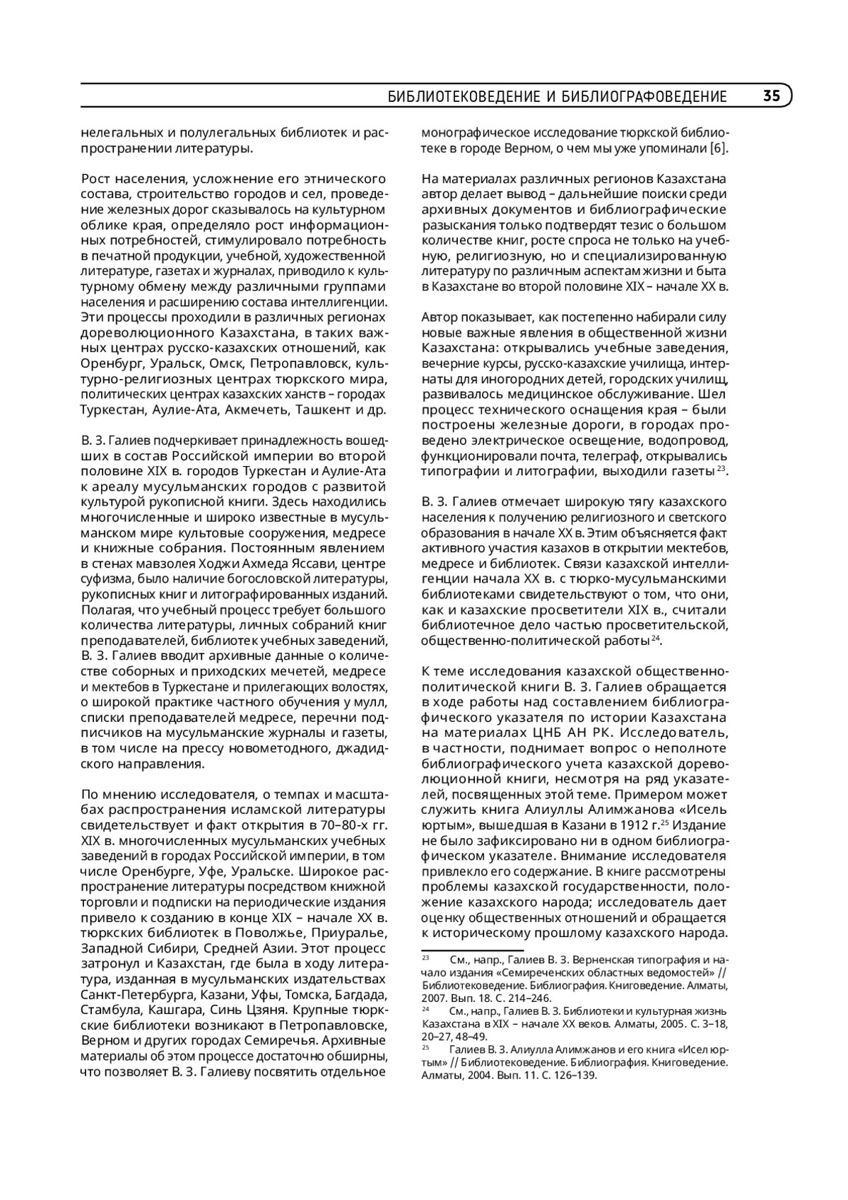 4. Шаймарданова З. Ж. В. З. Галиев и развитие научных исследований по изучению и сохранению документального наследия в НБ РК // Библиотековедение. Библиография. Книговедение. Алматы, 2008. Вып. 20. С. 188-200.