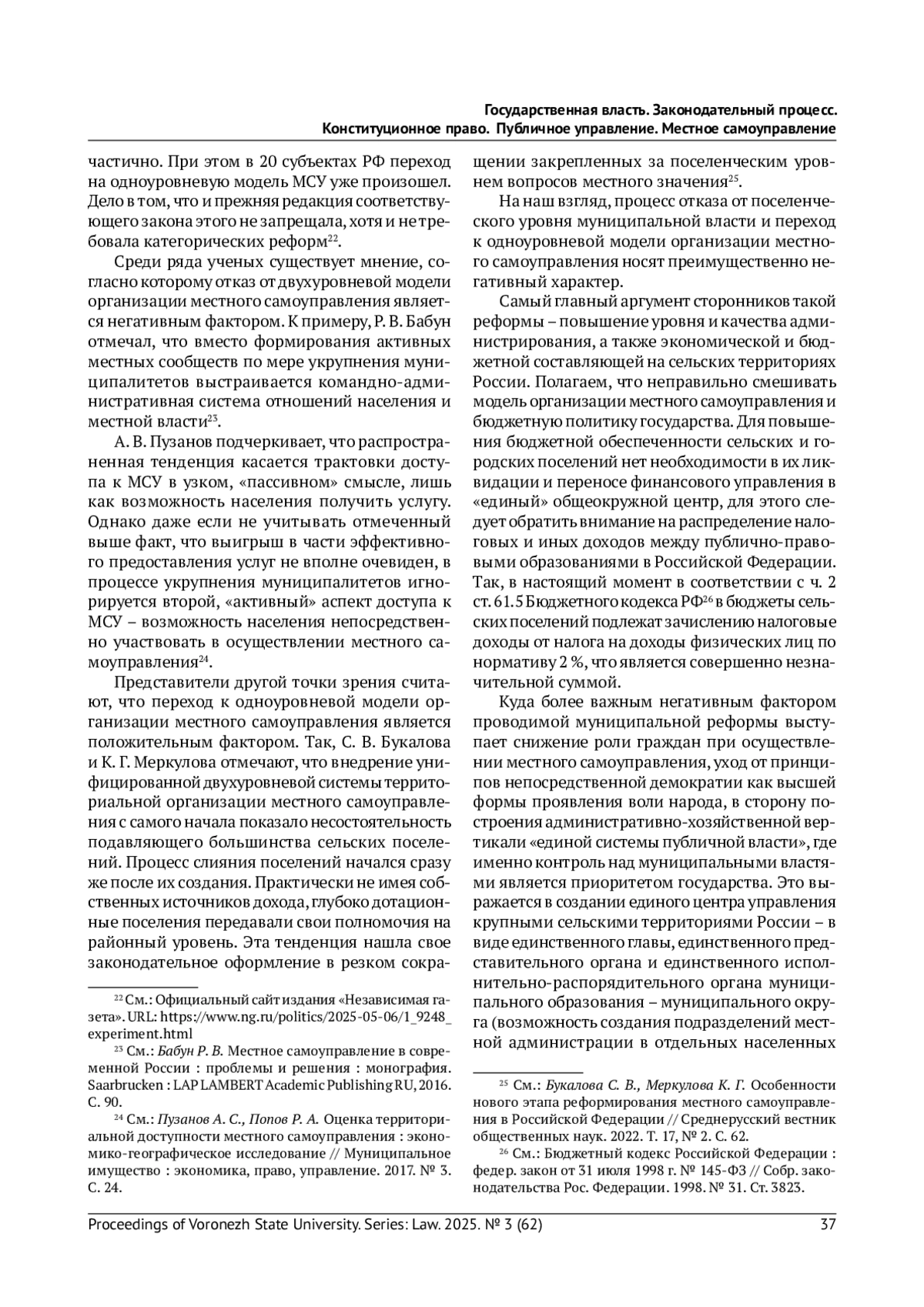 Статья: ДВУХУРОВНЕВАЯ СИСТЕМА ОРГАНИЗАЦИИ МЕСТНОГО САМОУПРАВЛЕНИЯ В РОССИИ: ТЕНДЕНЦИИ РАЗВИТИЯ И ПЕРСПЕКТИВЫ (2025)