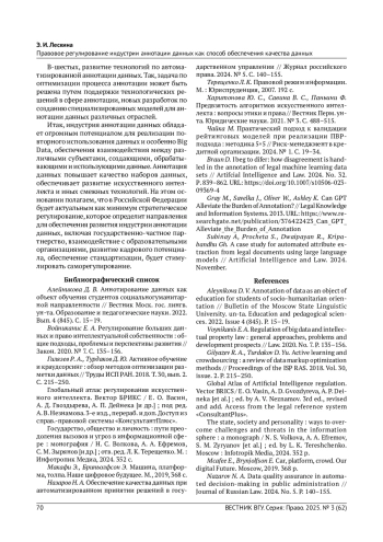 1. Алейникова Д. В. Аннотирование данных как объект обучения студентов социальногуманитарной направленности // Вестник Моск. гос. лингв. ун-та. Образование и педагогические науки. 2022. Вып. 4 (845). С. 15-19.