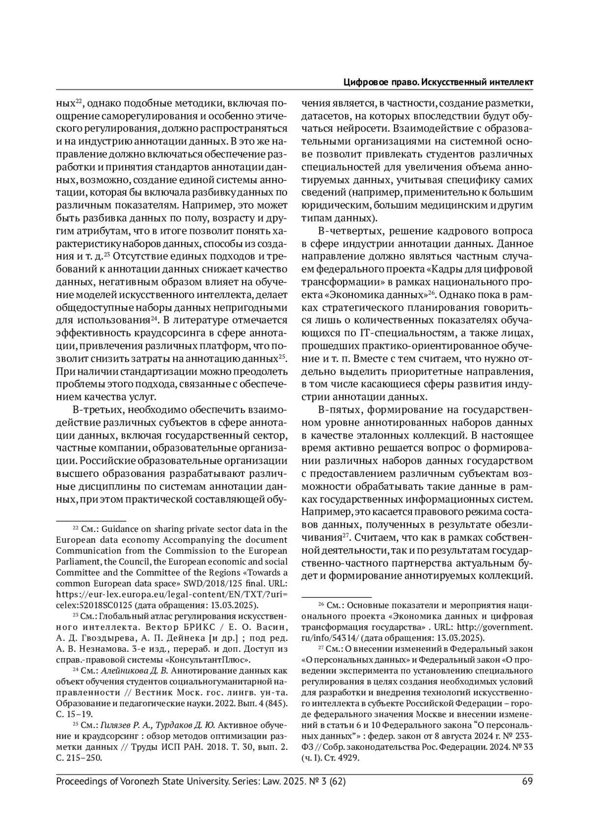 7. Назаров Н. А. Обеспечение качества данных при автоматизированном принятии решений в государственном управлении // Журнал российского права. 2024. № 5. С. 140-155. EDN: AFDYLP
