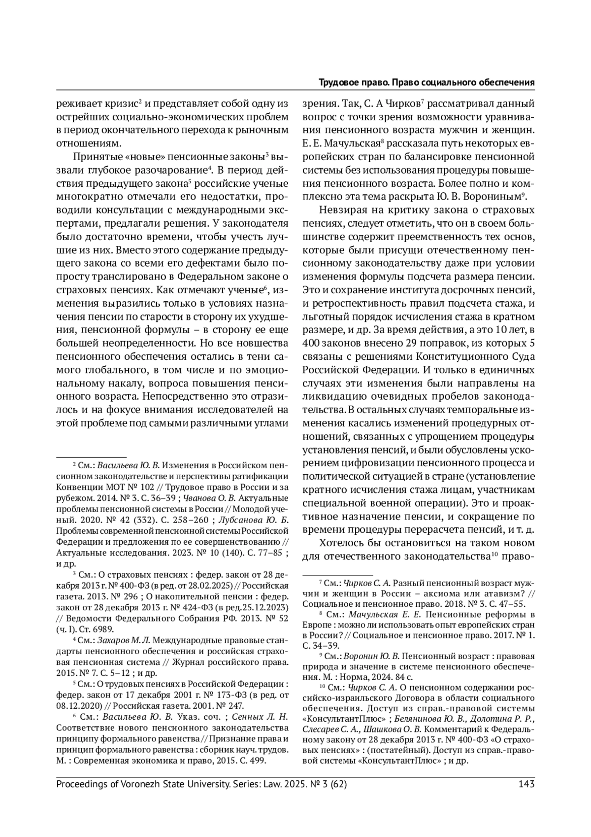 3. Воронин Ю. В. Пенсионный возраст: правовая природа и значение в системе пенсионного обеспечения. М.: Норма, 2024. 84 с.