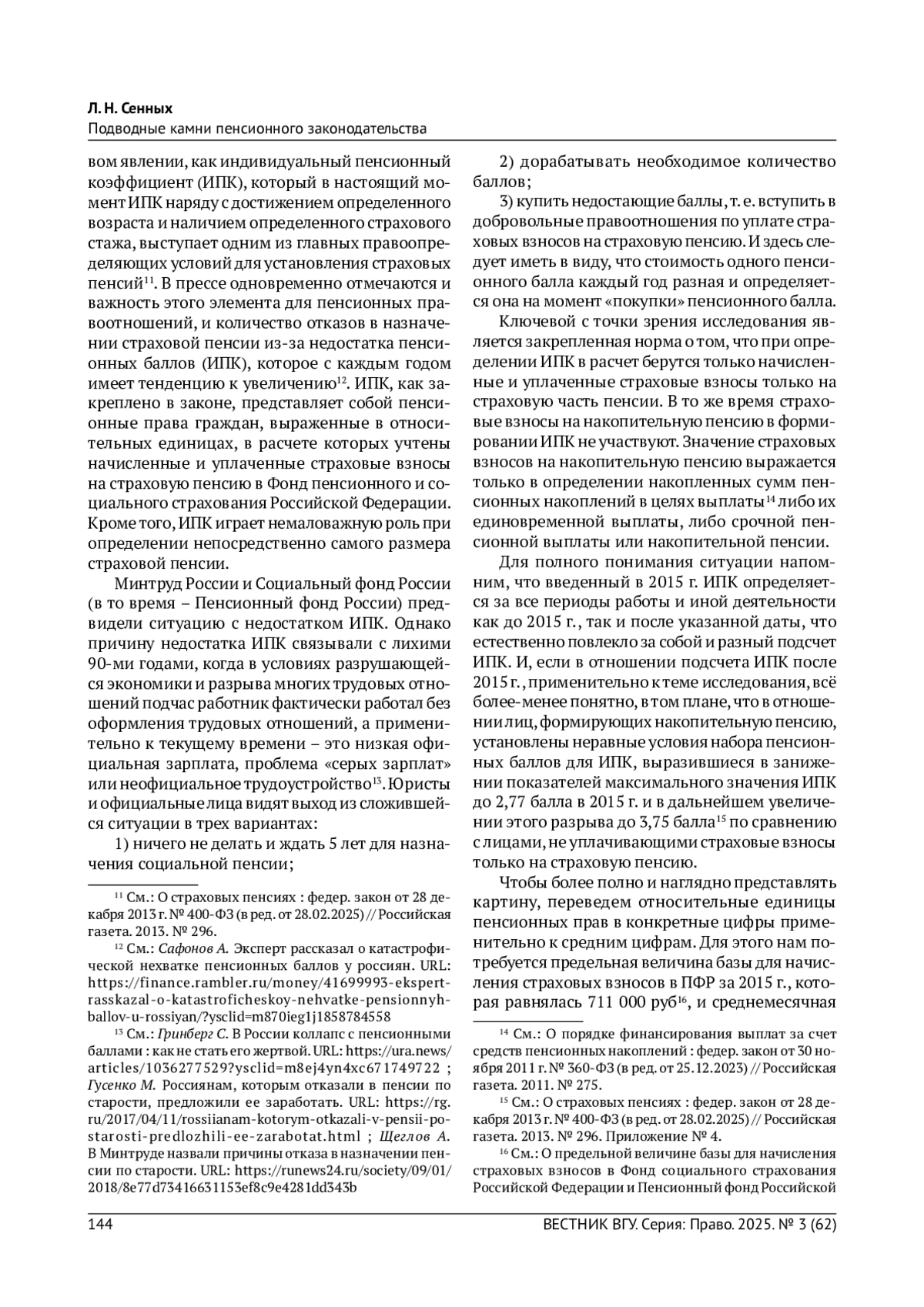 14. Сенных Л. Н. Соответствие нового пенсионного законодательства принципу формального равенства // Признание права и принцип формального равенства: сборник науч. трудов. М.: Современная экономика и право, 2015. С. 493-500. EDN: UJWHNN
