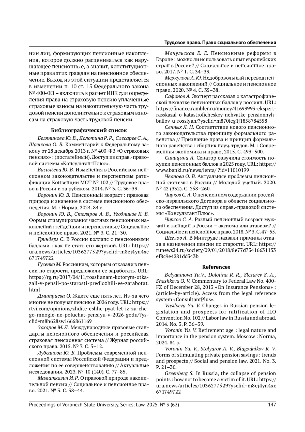 4. Воронин Ю. В., Столяров А. В., Угодников К. В. Формы стимулирования частных пенсионных накоплений: тенденции и перспективы // Социальное и пенсионное право. 2021. № 3. С. 21-30. EDN: WWEQEP