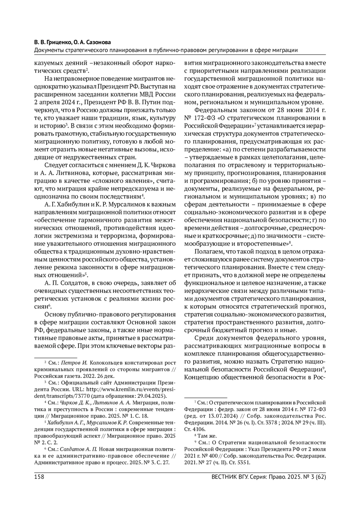6. Хабибулин А. Г., Мурсалимов К. Р. Современные тенденции государственной политики в сфере миграции: правообразующий аспект // Миграционное право. 2025 № 2. С. 2-5. EDN: VEMWAC