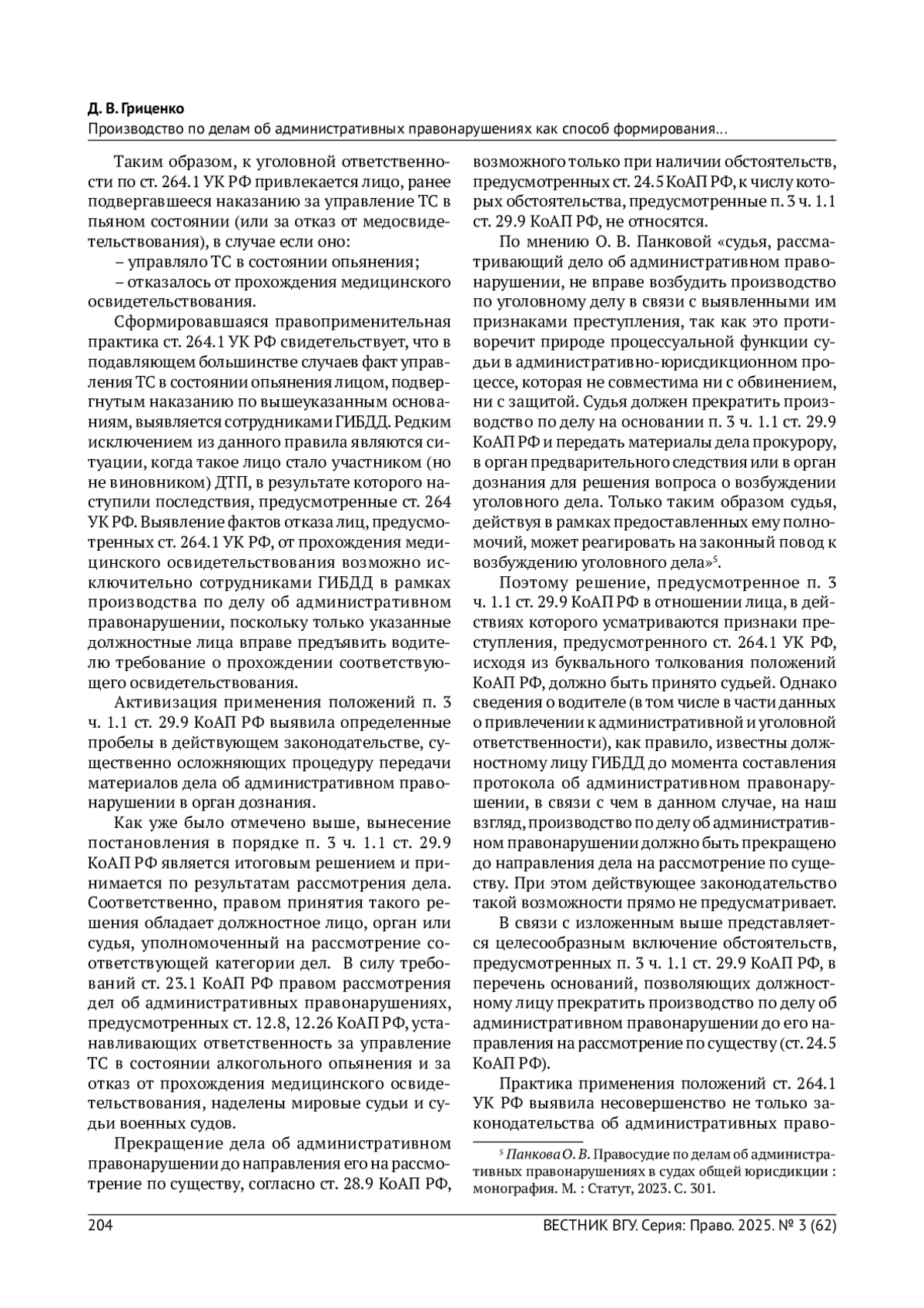 4. Панкова О. В. Правосудие по делам об административных правонарушениях в судах общей юрисдикции: монография. М.: Статут, 2023. 450 с. EDN: QBFNYB