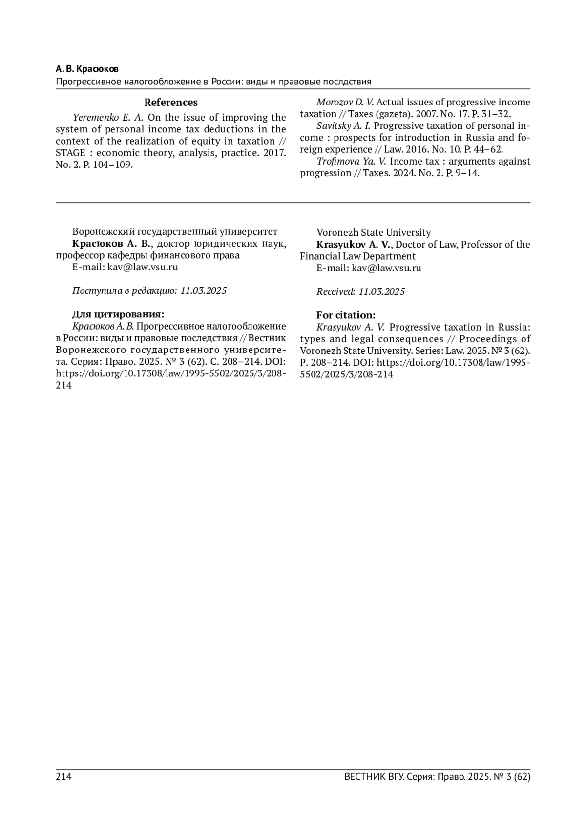 2. Морозов Д. В. Актуальные вопросы прогрессивного налогообложения доходов // Налоги (газета). 2007. № 17. С. 31-32.