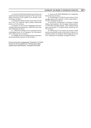 19. Петрова Н. Ю., Землянский В. Л., Канев И. А. Военно-библиотечное дело в Петроградском военном округе в 1918-1924 гг. // Гротовские чтения - 2022 : материалы Всерос. науч. конф. (Самара, 17-18 нояб. 2022 г.). Самара, 2023. С. 104-110.