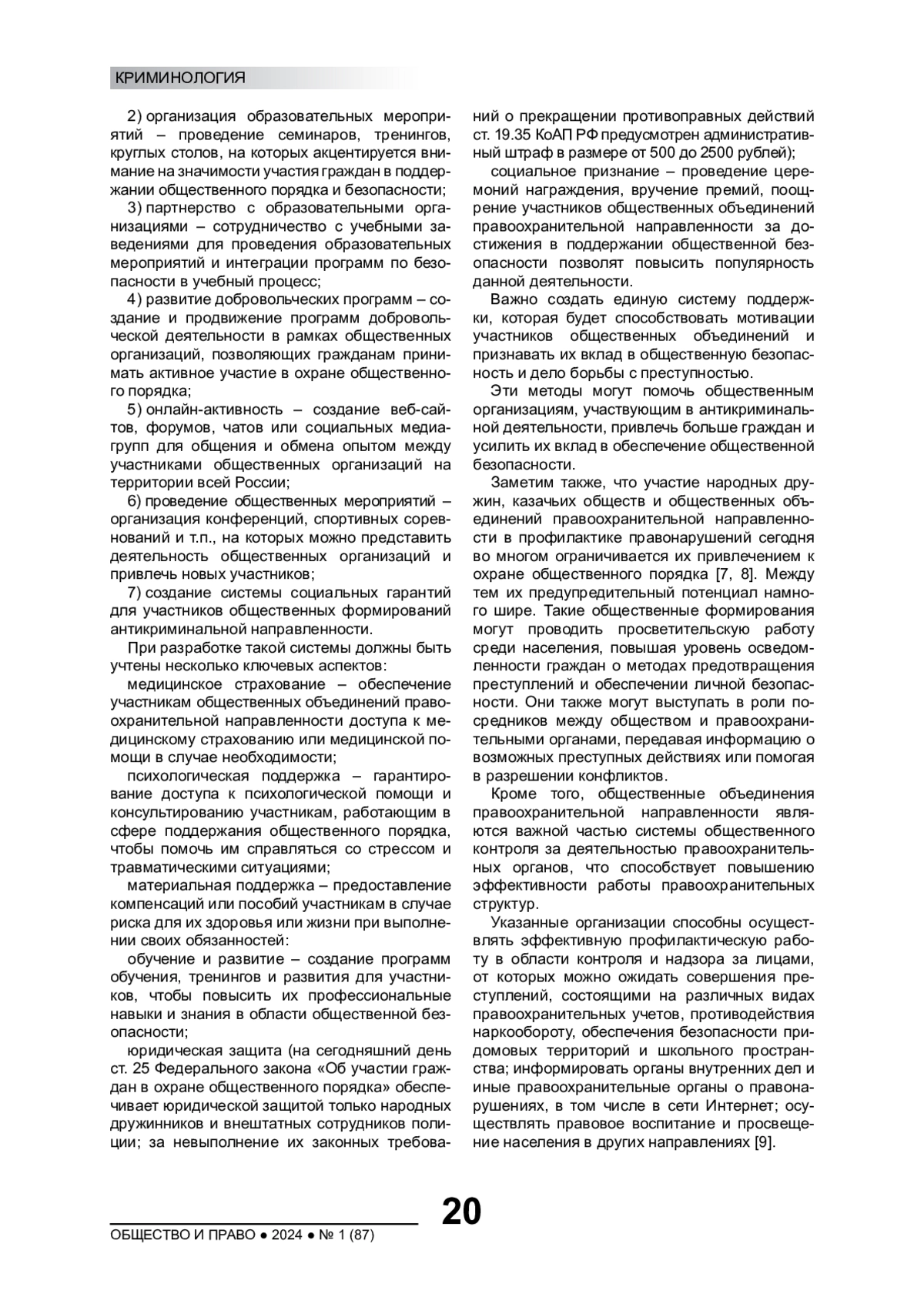 7. Грибанов Е.В. Правовое воспитание и просвещение населения как технология предупреждения преступлений // Общество и право. 2020. № 4(74). С. 12-18. EDN: PIUIKV