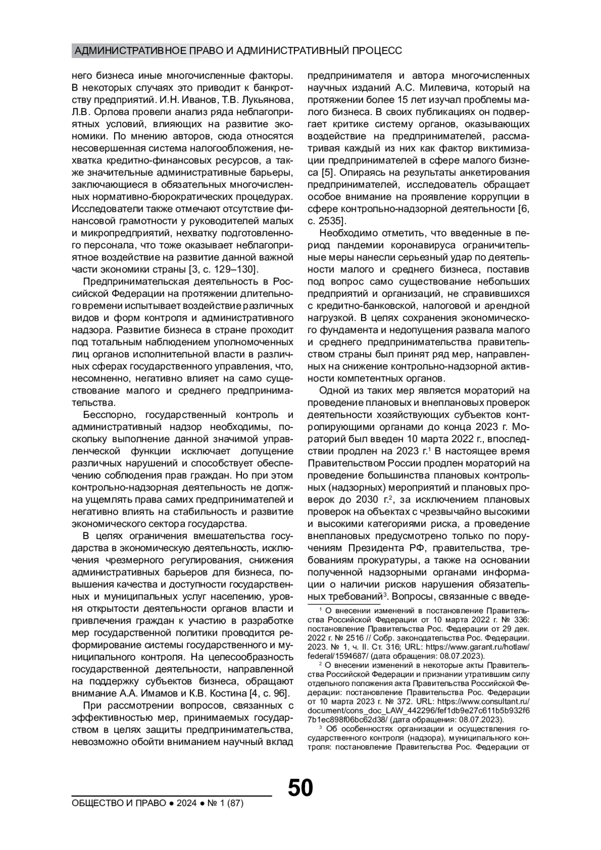 4. Имамов А.А., Костина К.В. Проведение проверок деятельности юридических лиц и индивидуальных предпринимателей в свете изменений действующего законодательства о государственном контроле (надзоре) // Вестник экономики, права и социологии. 2018. № 1. С. 96-99. EDN: YWRDRX