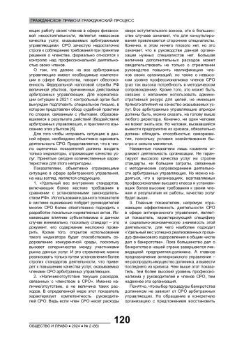 Статья: СОВЕРШЕНСТВОВАНИЕ ОЦЕНКИ ДЕЯТЕЛЬНОСТИ САМОРЕГУЛИРУЕМЫХ ОРГАНИЗАЦИЙ АРБИТРАЖНЫХ УПРАВЛЯЮЩИХ (2024)