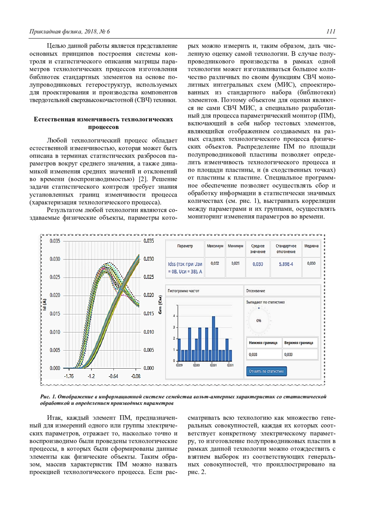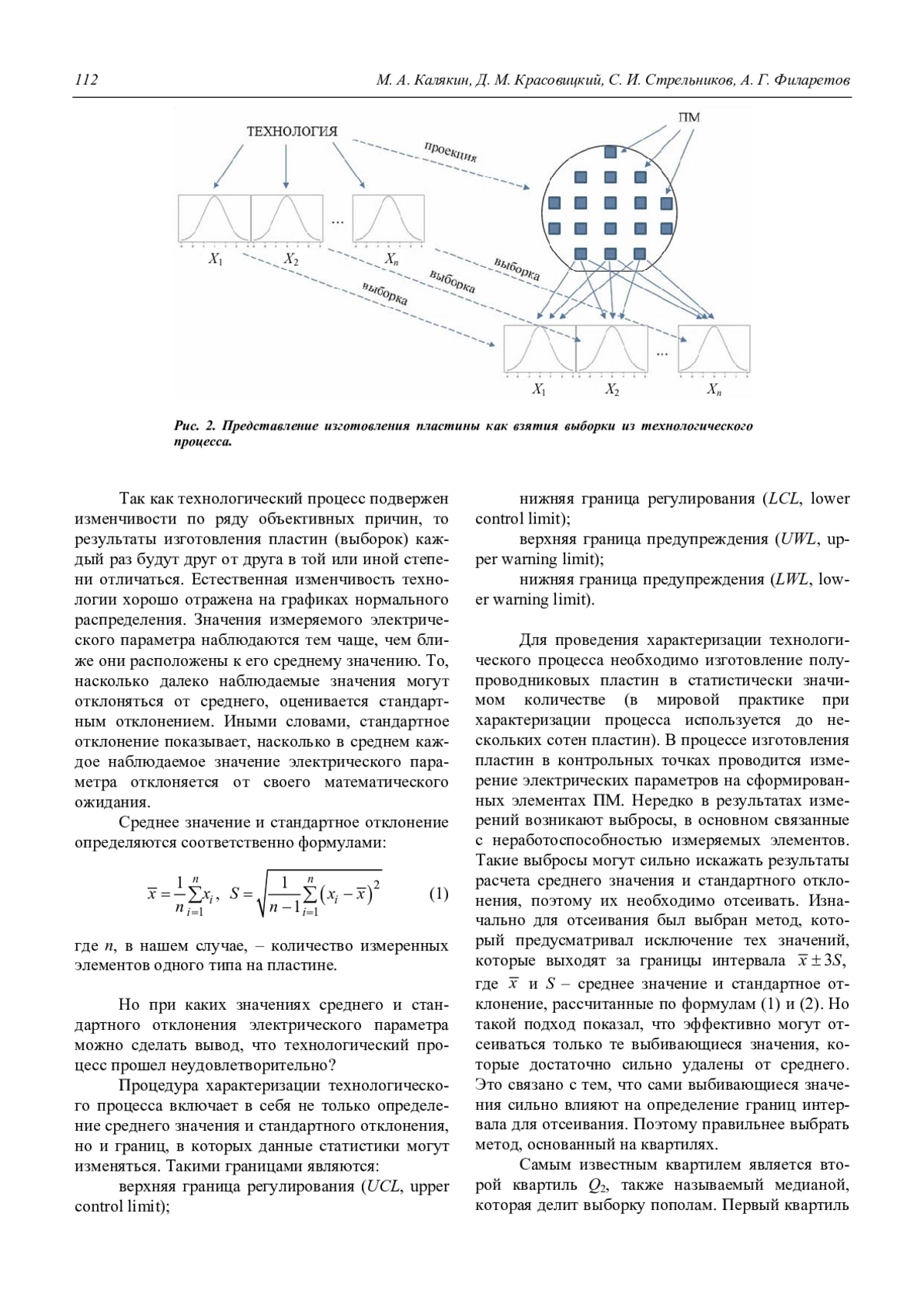 Калякин М. А., Красовицкий Д. М., Стрельников С. И., Филаретов А. Г. Применение статистических методов контроля технологических процессов для повышения надежности проектирования сверхвысокочастотных монолитных микросхем 110