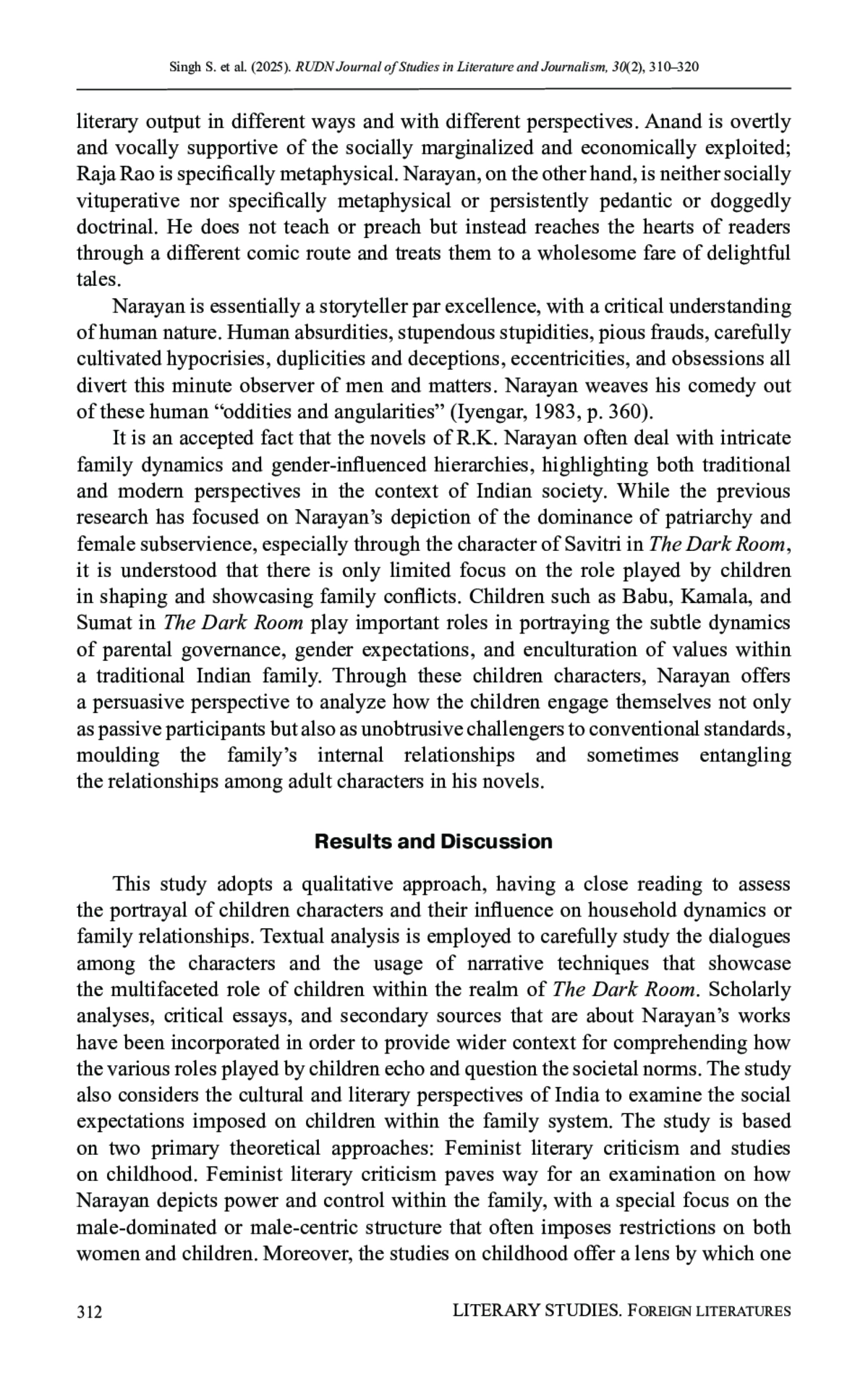 15. Singh, S. (2020). R.K. Narayan’s The Dark Room: A study in feminist perspective. Research Review: The Refereed & Peer Review International Journal, 7(91).