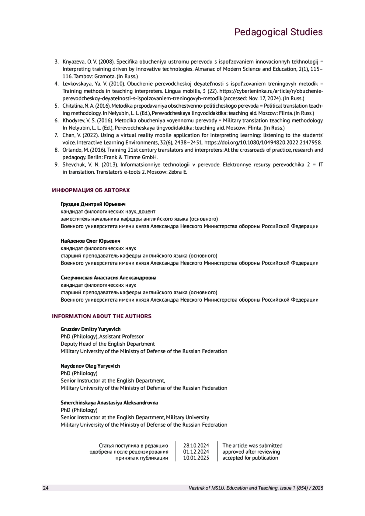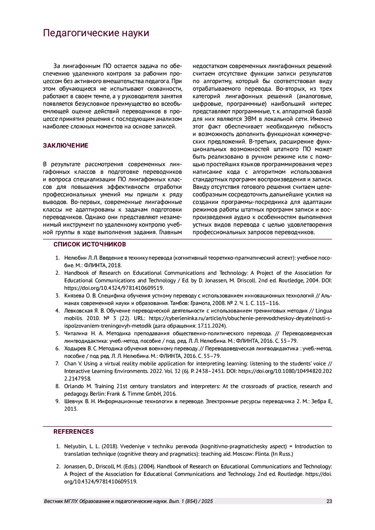 7. Chan V. Using a virtual reality mobile application for interpreting learning: listening to the students’ voice // Interactive Learning Environments. 2022. Vol. 32 (6). P. 2438-2451. DOI: 10.1080/10494820.2022.2147958