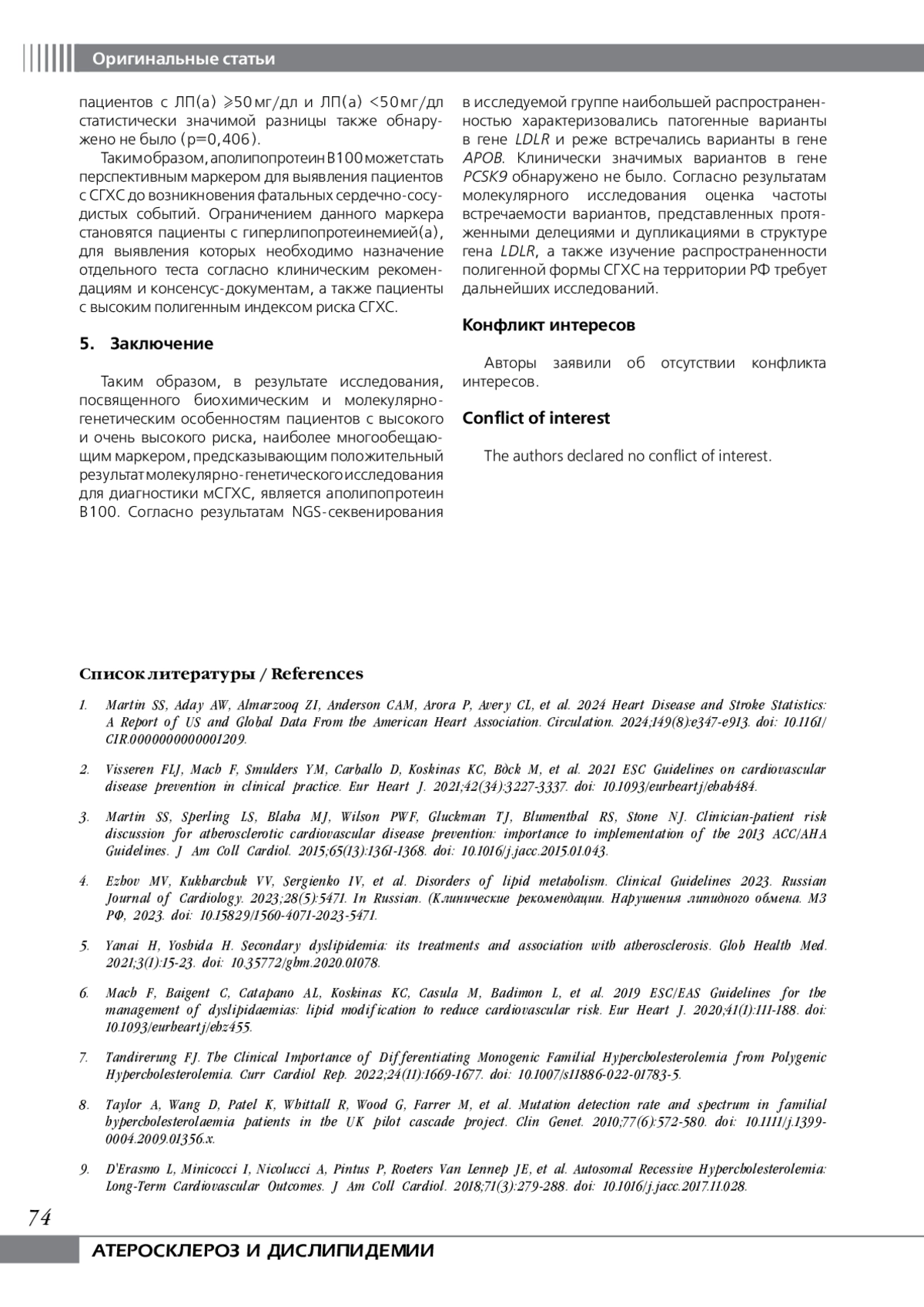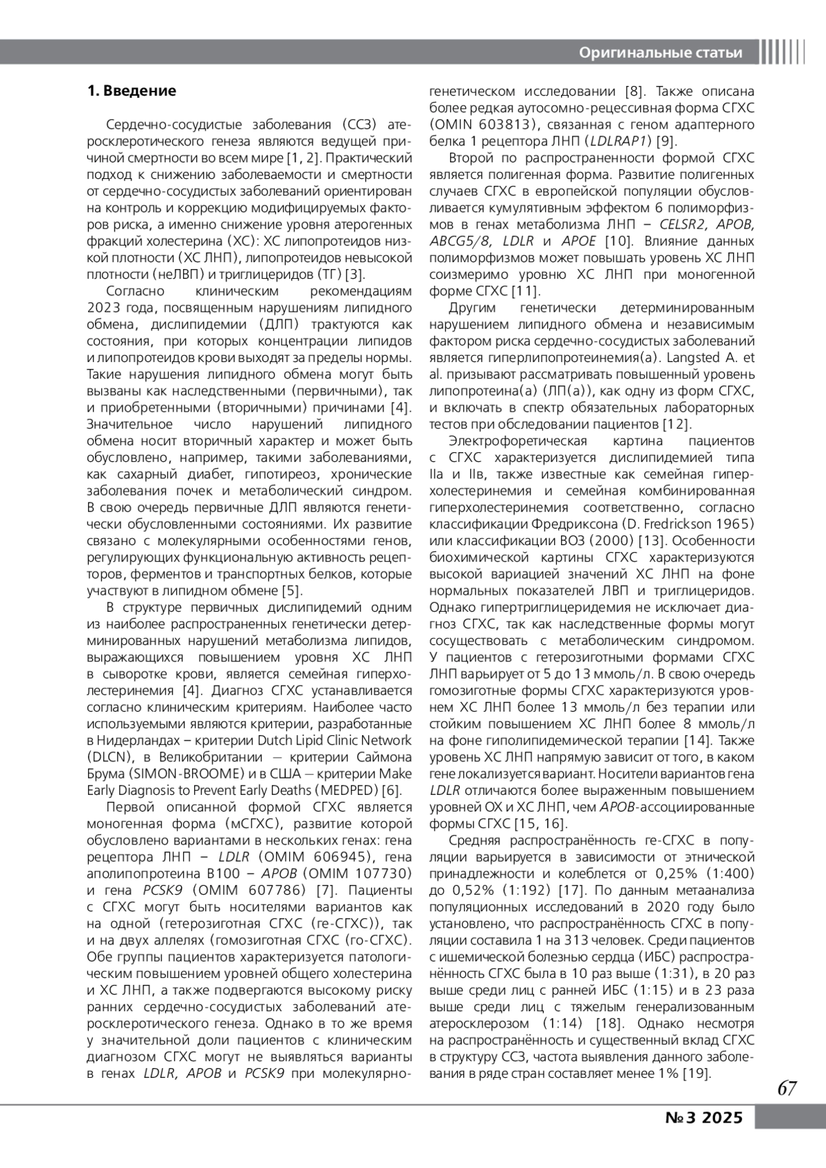 Ключевые фразы: сердечно-сосудистые заболевания атеросклеротического генеза, лнп, семейная гиперхолестеринемия, моногенная сгхс, ldlr, apob, pcsk9, полигенная сгхс, липопротеин (а)