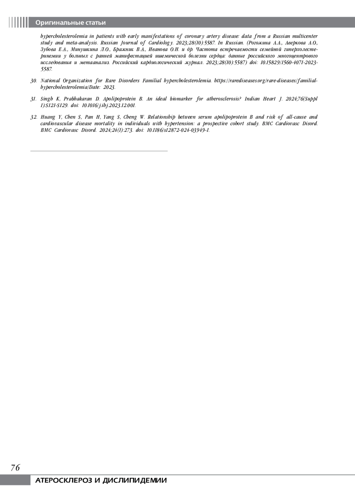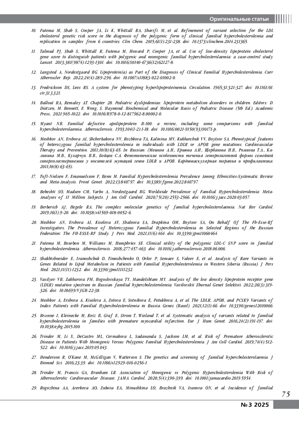 Заключение. Дальнейшее исследование молекулярно-генетических и биохимических особенностей позволит персонализировать тактику ведения пациентов с семейной гиперхолестеринемией.