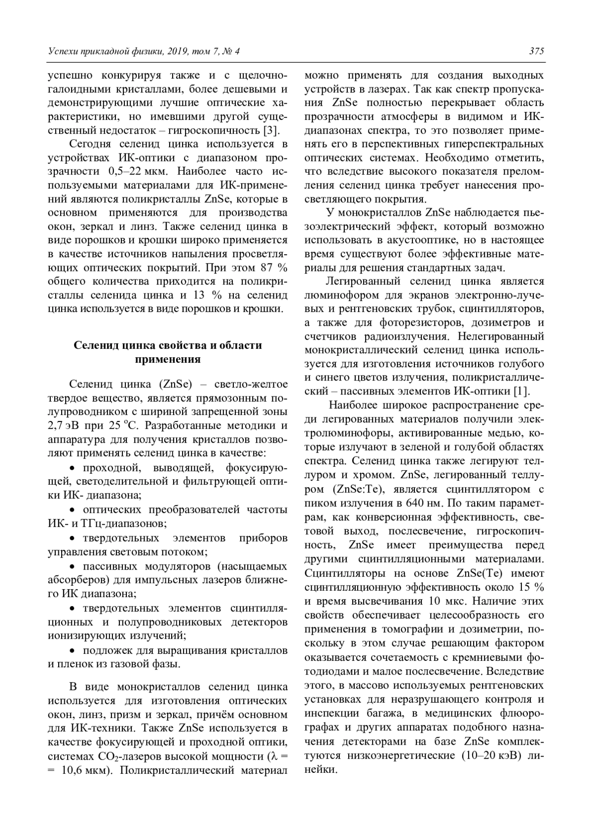 Селенид цинка в современной опто- и фотоэлектронике (обзор)