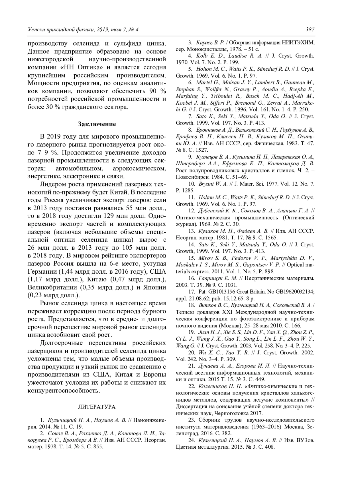 4. Kolb E. D., Laudise R. A. // J. Cryst. Growth. 1970. Vol. 7. No. 2. P. 199.