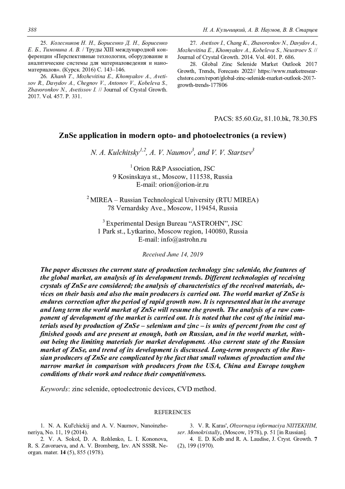 24. Кульчицкий Н. А., Наумов А. В. // Изв. ВУЗов. Цветная металлургия. 2015. № 3. С. 408.
