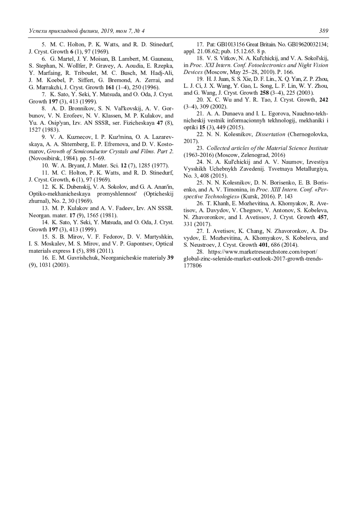 20. Wu X. C., Tao Y. R. // J. Cryst. Growth. 2002. Vol. 242. No. 3-4. P. 309. EDN: SYTXEV