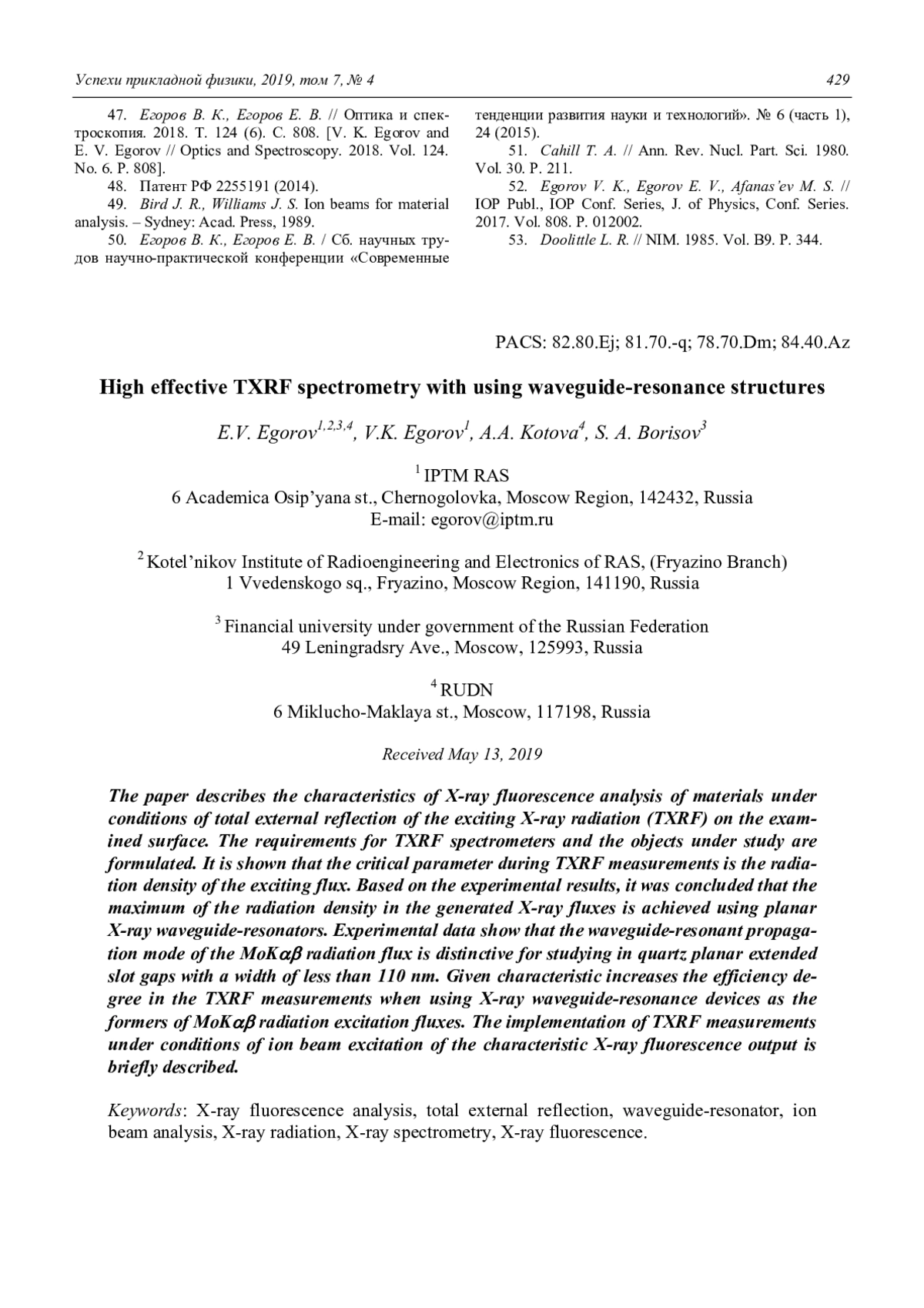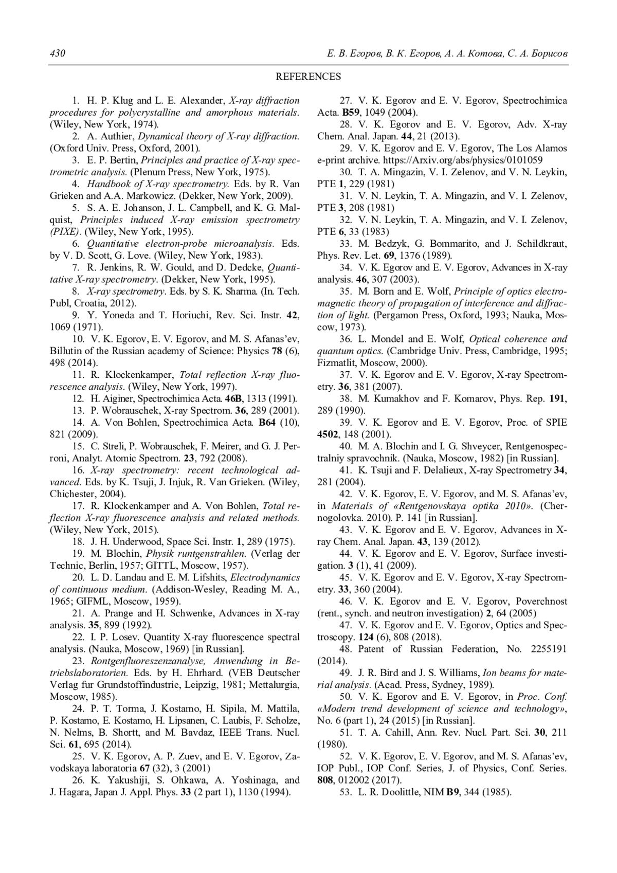 43. Egorov V. K., Egorov E. V. // Advances in X-ray Chem. Anal. Japan. 2012. Vol. 43. P. 139.