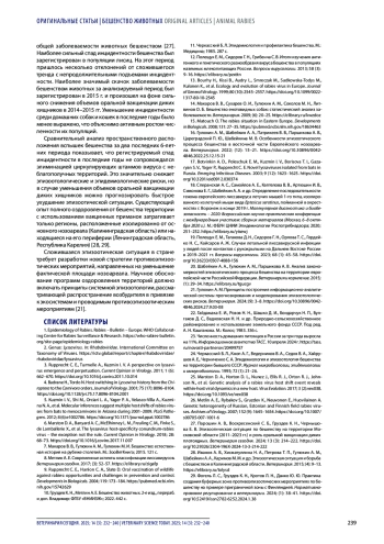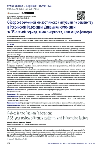 ГУЛЮКИН А. М., ШАБЕЙКИН А. А. ОБЗОР СОВРЕМЕННОЙ ЭПИЗООТИЧЕСКОЙ СИТУАЦИИ ПО БЕШЕНСТВУ В РОССИЙСКОЙ ФЕДЕРАЦИИ. ДИНАМИКА ИЗМЕНЕНИЙ ЗА 35-ЛЕТНИЙ ПЕРИОД, ЗАКОНОМЕРНОСТИ, ВЛИЯЮЩИЕ ФАКТОРЫ // ВЕТЕРИНАРИЯ СЕГОДНЯ. 2025. № 3, ТОМ 14