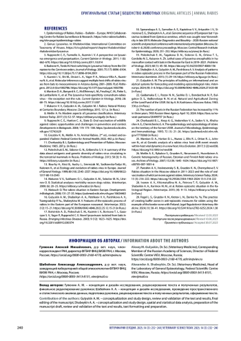 Введение. На территории Российской Федерации регистрируются эпизоотии бешенства природного типа, которые характеризуются стабильно высокой инцидентностью среди диких и домашних животных. Непрерывность эпизоотического процесса бешенства обеспечивается биологической резервацией вируса Lyssavirus rabies в популяциях диких хищников семейства псовых, преимущественно в популяции рыжей лисицы (Vulpes vulpes). Экология и этология лисиц предопределяют территорию распространения бешенства, сезонную динамику инцидентности и видовой состав животных, вовлекаемых в эпизоотический процесс.