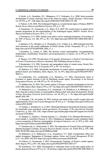 19.Федоров, Г. М., Корнеевец, В. С. 2015, Социально-экономическая типологизация приморских регионов России, Балтийский регион, № 4, с. 121—134, EDN: VCYWWD, https://doi.org/10.5922/2074-9848-2015-4-7