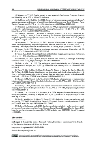 16. Шаклеина, М. В., Шаклеин, К. И. 2022, Факторы регионального развития предпринимательства России: оценка и роль пространственных взаимосвязей, Экономические и социальные перемены: факты, тенденции, прогноз, т. 15, No 5, с. 118—134, EDN: FOGSTV, https://doii.org/10.15838/esc.2022.5.83.6