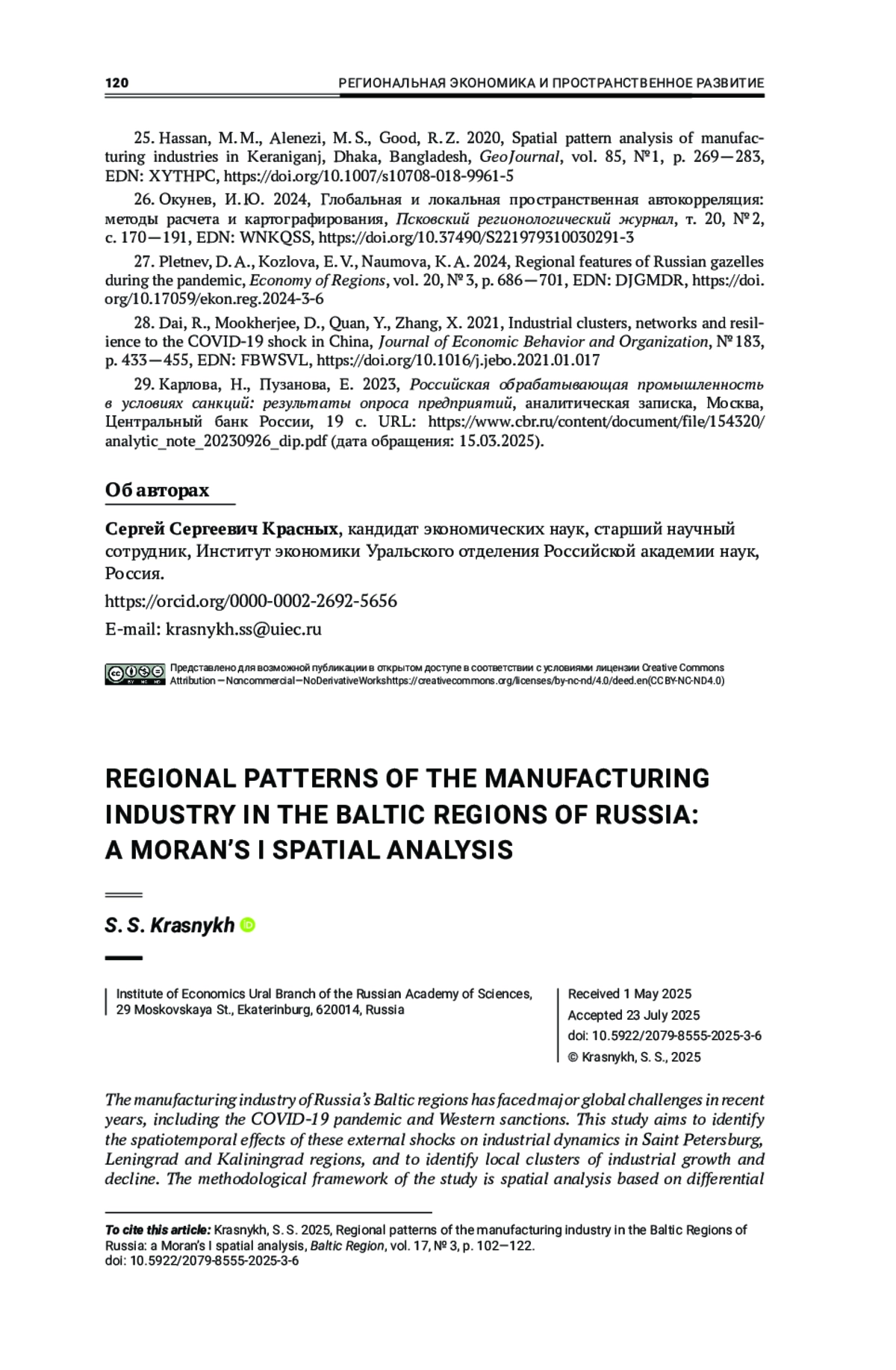 3. Stepanov, A. V., Burnasov, A. S., Valiakhmetova, G. N., Ilyushkina, M. Y. 2022, The impact of economic sanctions on the industrial regions of Russia (the case of Sverdlovsk region), R-economy, vol. 8 (3), р. 295—305, EDN: JJJRZI, https://doi.org/10.15826/recon.2022.8.3.023