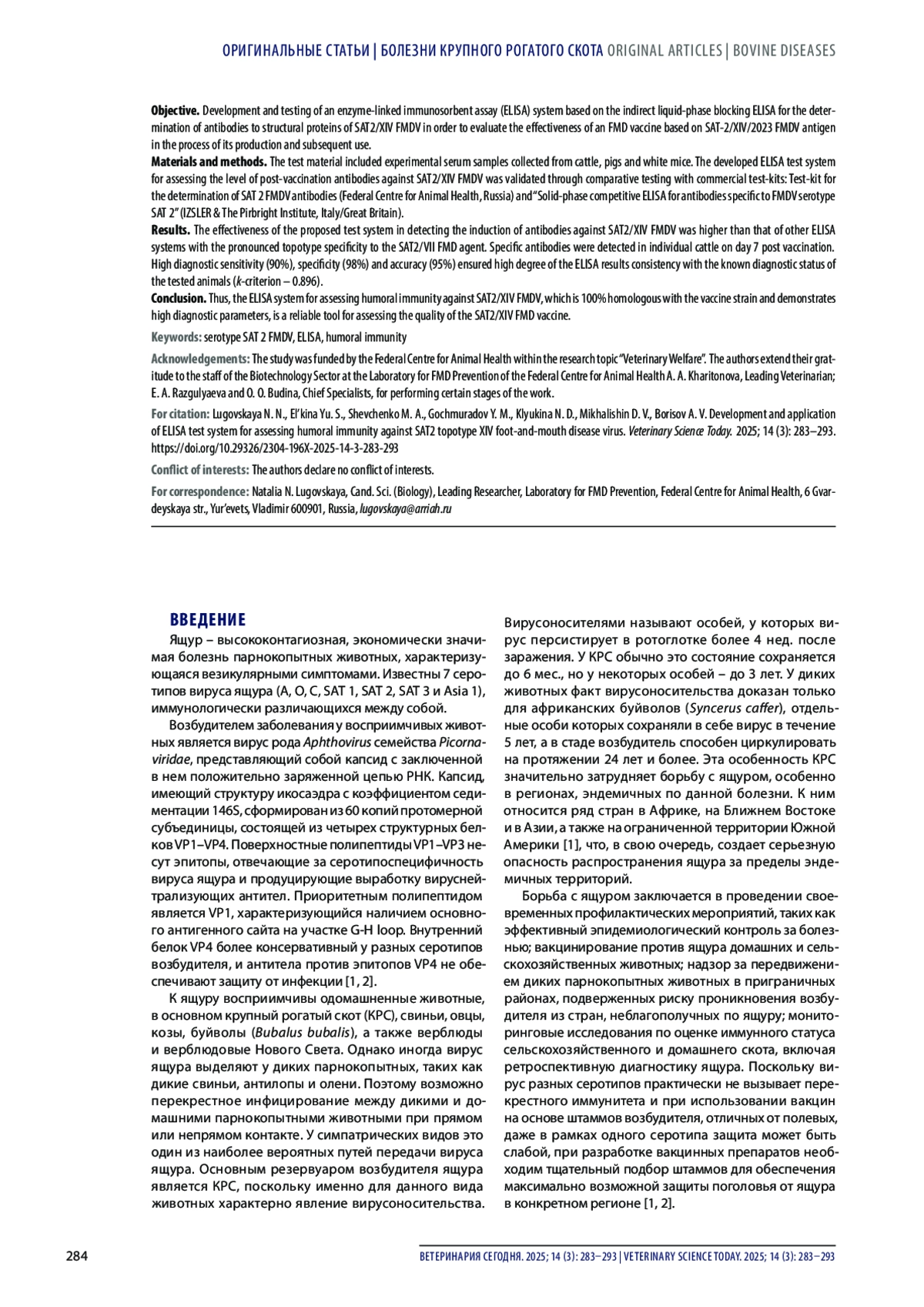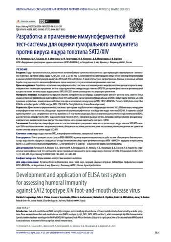 Статья: Разработка и применение иммуноферментной тест-системы для оценки гуморального иммунитета против вируса ящура топотипа SAT2/XIV (2025)