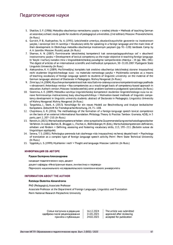 11. Targońska J., Stork A. Vorschläge für ein neues Modell zur Beschreibung und Analyse lexikalischer Kompetenz // Zeitschrift für Fremdsprachenforschung. 2013. № 24. P. 71-108.