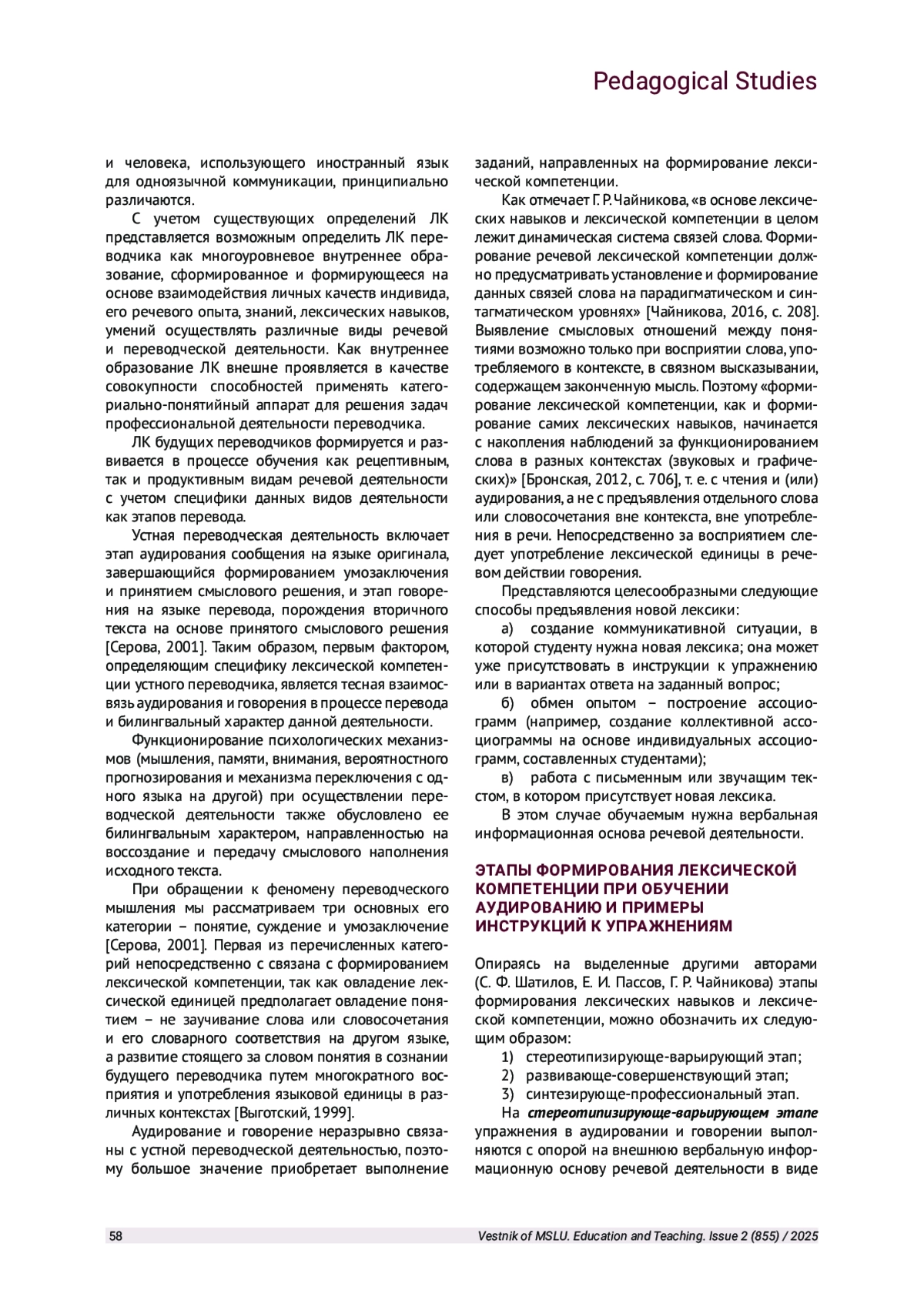 12. Чайникова Г. Р. Методика формирования иноязычной речевой лексической компетенции на основе внешней информационной основы // Филологические науки. Вопросы теории и практики. Тамбов: Грамота, 2016. № 4(58): в 3 ч. Ч. 2. C. 207-210.