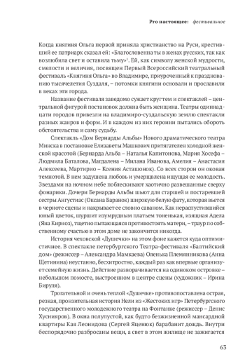 Владимирский академический областной театр драмы, вопреки сложившимся обстоятельствам (его здание не первый год находится на ремонте, поэтому спектакли играют на других площадках), продолжает активную фестивальную деятельность. К двум смотрам («У Золотых ворот» и «Территории единения») в 2024 г. прибавился еще один – «Княгиня Ольга».