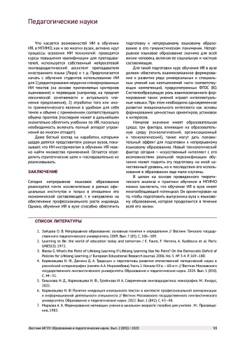 9. Титова С. В. Технологические решения на базе искусственного интеллекта в обучении иностранным языкам // Вестник Московского университета. Серия 19: Лингвистика и межкультурная коммуникация. 2024. С. 18-37. EDN: OWSQVG