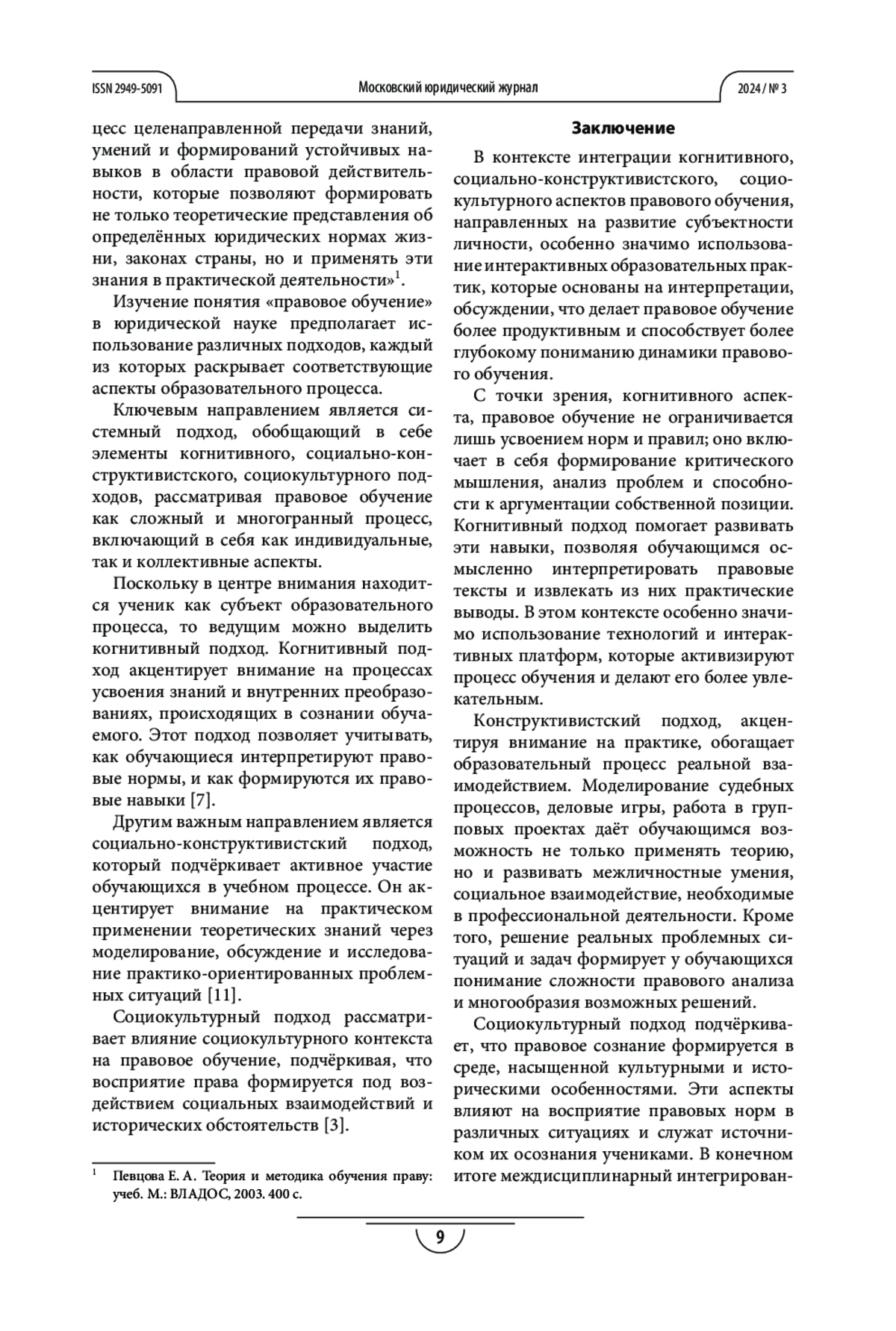 Цель. Описать современные подходы к изучению понятия «правовое обучение», способствующие передаче тех социально-правовых норм, которые соответствуют ценностным установкам общества и государства.