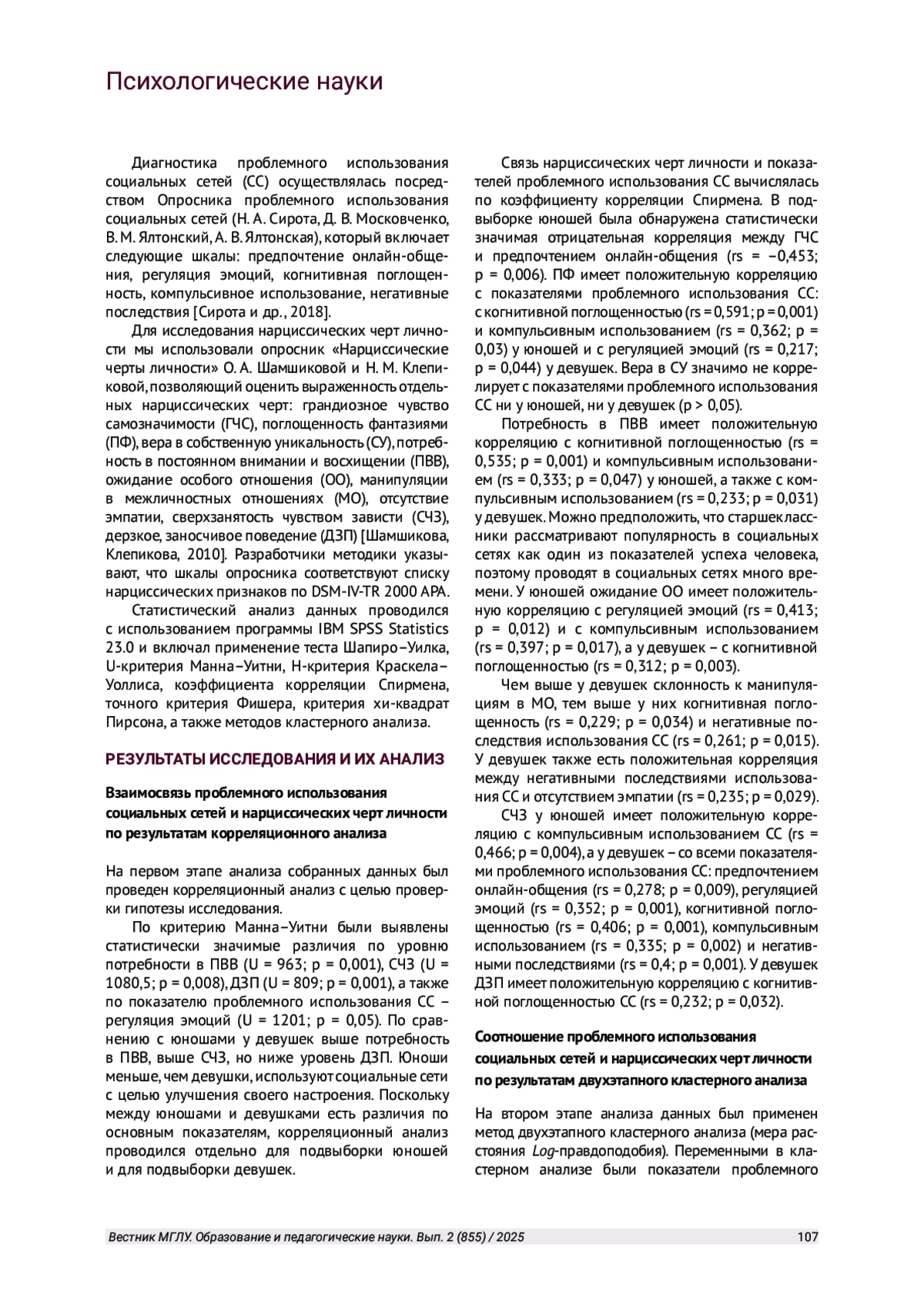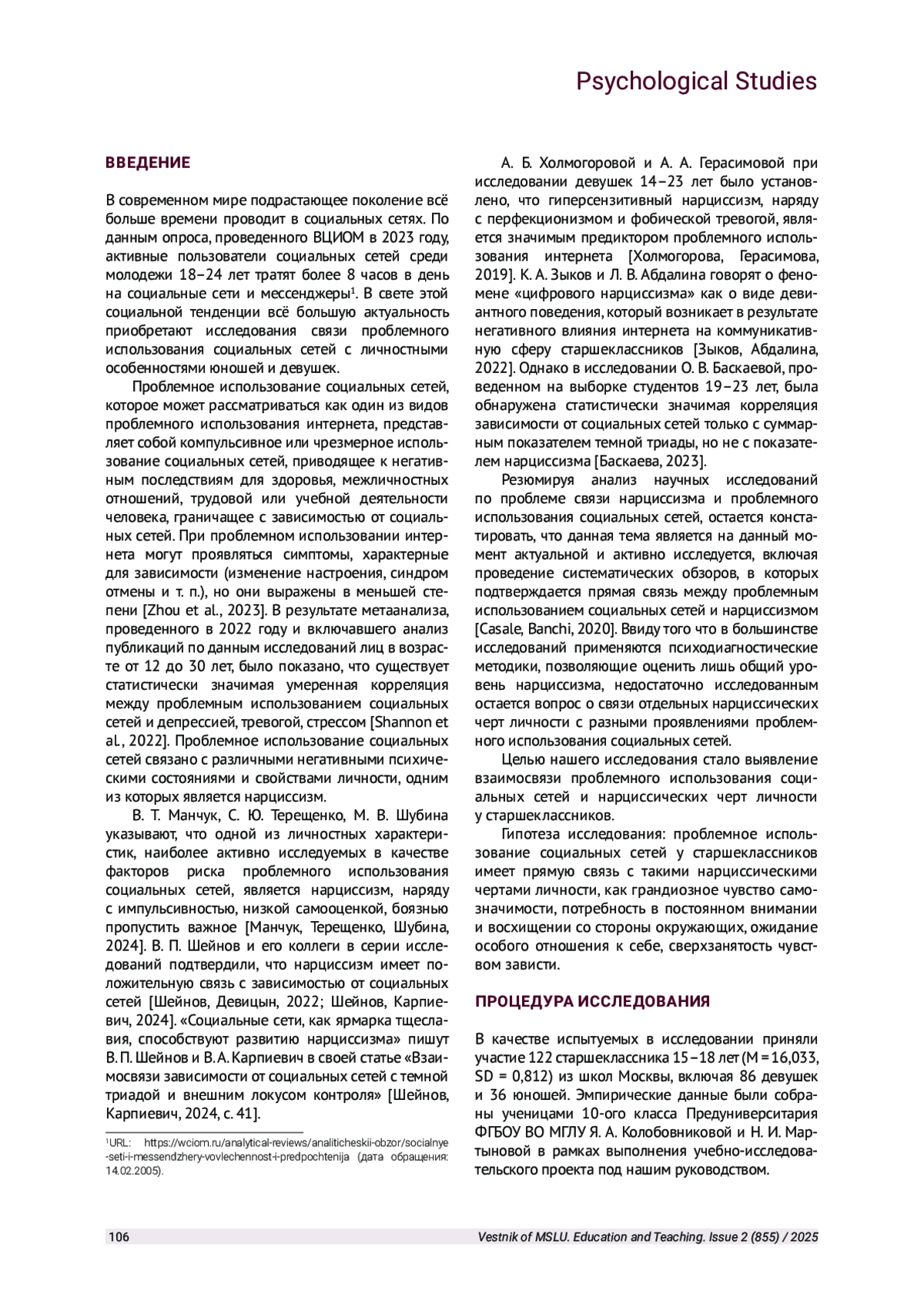 3. Манчук В. Т., Терещенко С. Ю., Шубина М. В. Проблемное использование социальных сетей: терминология, распространенность, психосоциальные факторы риска и соматическая коморбидность // Социальная психология и общество. 2024. Т. 15. № 2. C. 28-46. DOI: 10.17759/sps.2024150203 EDN: HFJDVL