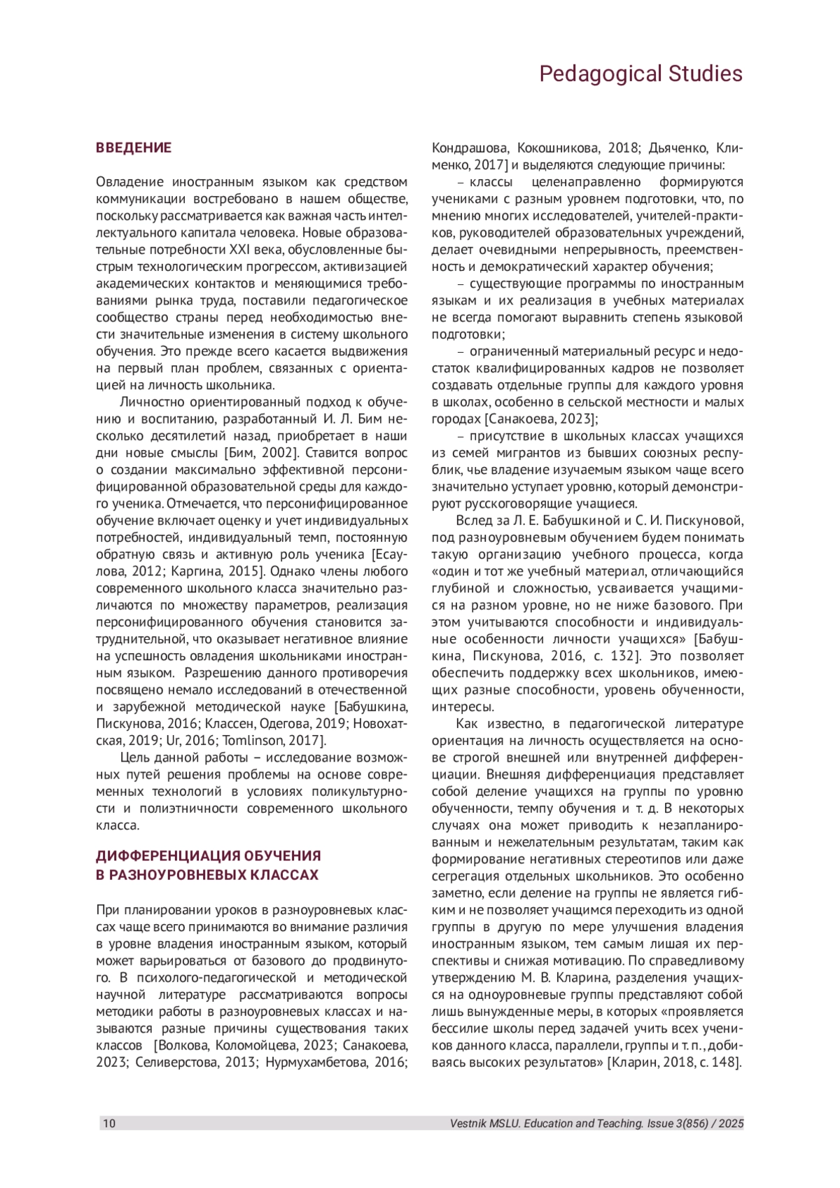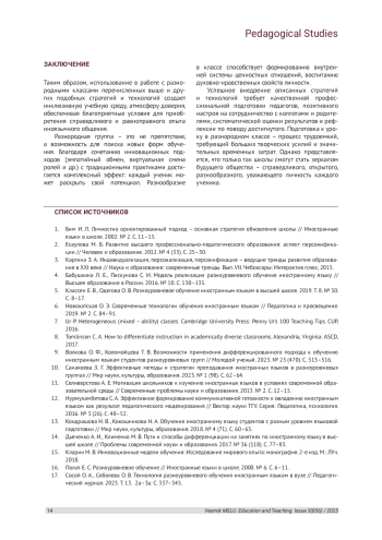 5. Классен Е. В., Одегова О. В. Разноуровневое обучение иностранным языкам в высшей школе. 2019. Т. 8. № 30. С. 8-17.