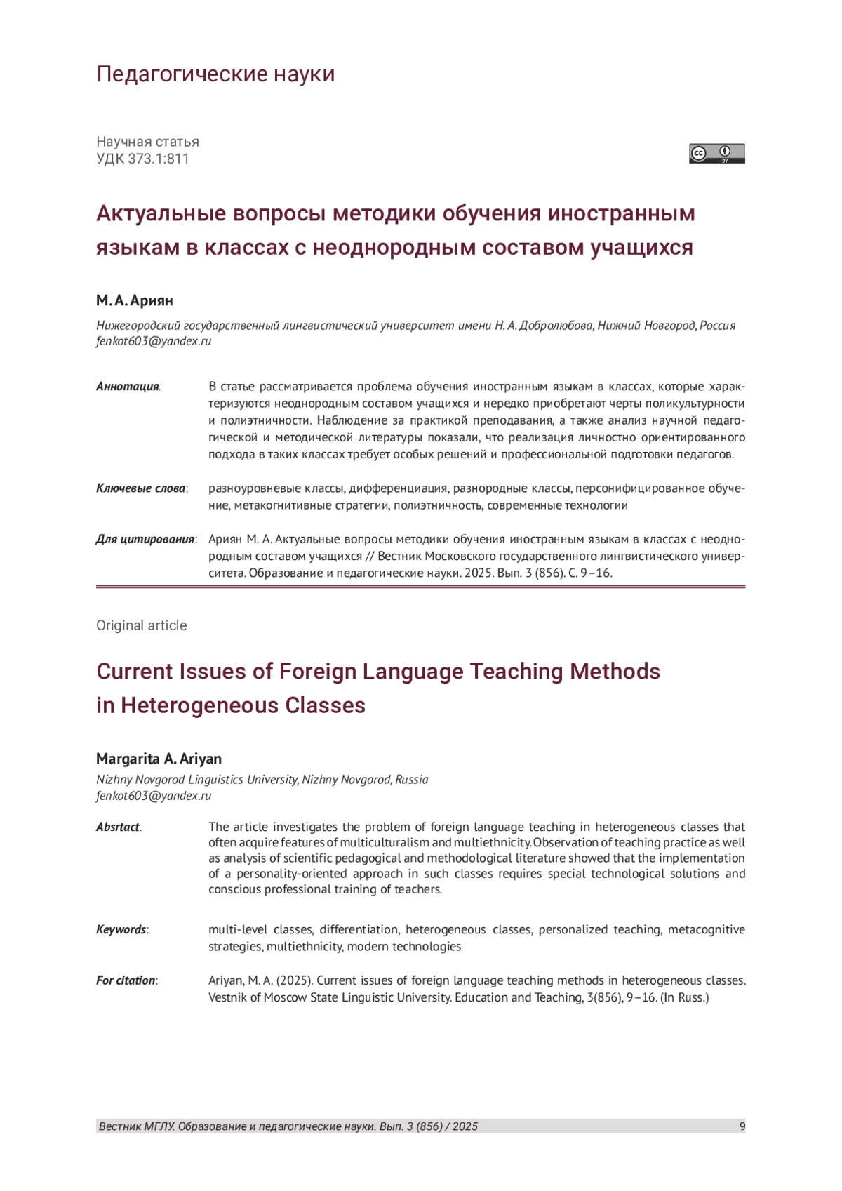 10. Санакоева З. Г. Эффективные методы и стратегии преподавания иностранных языков в разноуровневых группах // Мир науки, культуры, образования. 2023. № 1 (98). С. 62-64. EDN: OPZAOZ