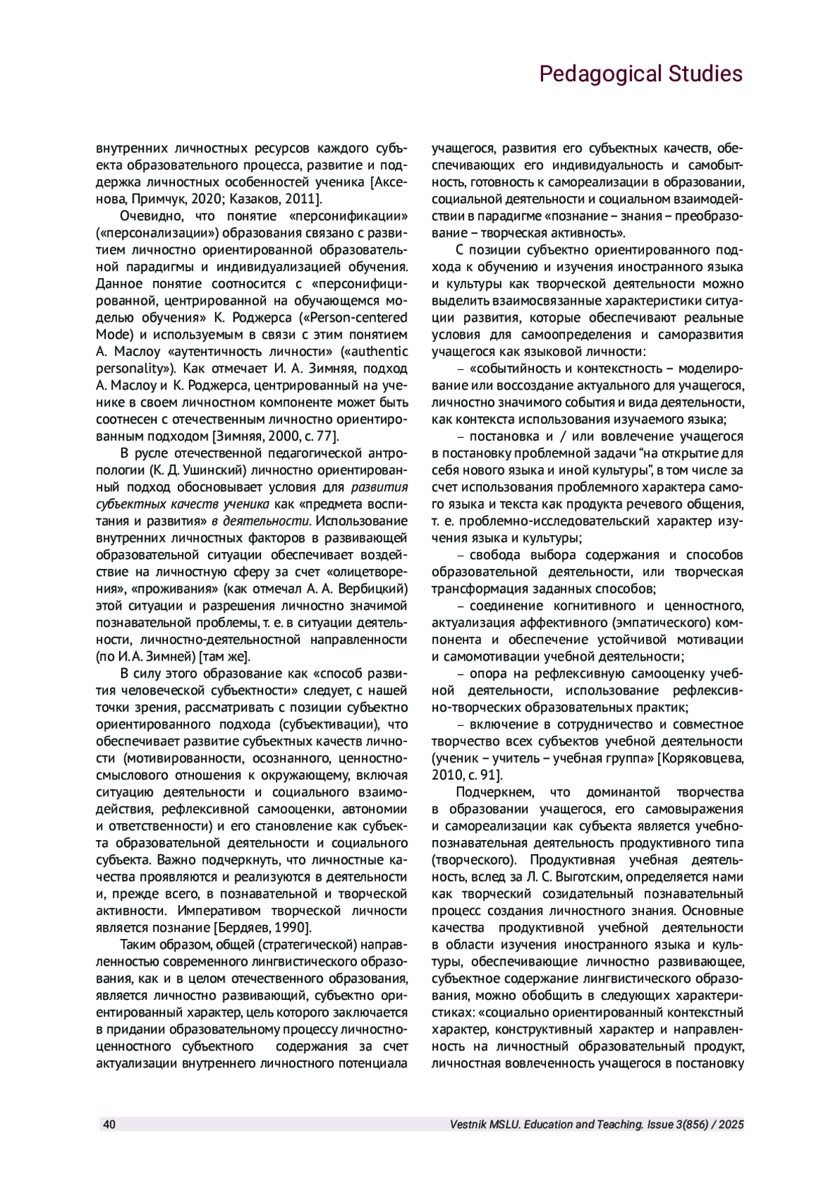 7. Аксенова А. Ю., Примчук Н. В. Принципы персонификации образовательного процесса в постнеклассической дидактике (антрополого-аксиологический подход) // Человек и образование. 2022. № 1. С. 177-186.