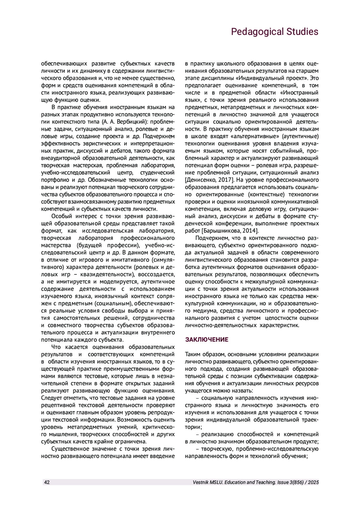 В статье рассматривается динамика развития личностно ориентированной парадигмы лингвистического образования на современном этапе; подчеркивается направленность на личностно развивающий, субъектно ориентированный характер обучения иностранным языкам; выделяются условия реализации данного подхода и создания ситуации развития субъектных качеств учащегося; рассматриваются возможности обеспечения субъектно ориентированного характера содержания обучения, образовательных практик и оценивания образовательных результатов в области изучения иностранного языка и культуры.