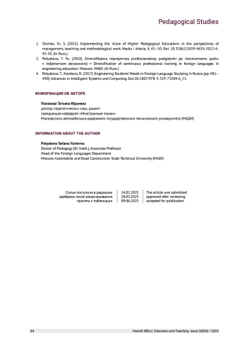Журнал: ВЕСТНИК МОСКОВСКОГО ГОСУДАРСТВЕННОГО ЛИНГВИСТИЧЕСКОГО УНИВЕРСИТЕТА. ОБРАЗОВАНИЕ И ПЕДАГОГИЧЕСКИЕ НАУКИ