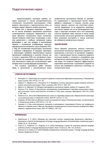 Статья: ПИСЬМЕННОЕ ТВОРЧЕСКОЕ ЗАДАНИЕ НА ОЛИМПИАДАХ ПО ИТАЛЬЯНСКОМУ ЯЗЫКУ: НЕКОТОРЫЕ ОСОБЕННОСТИ ПОДГОТОВКИ И ОЦЕНИВАНИЯ (2025)