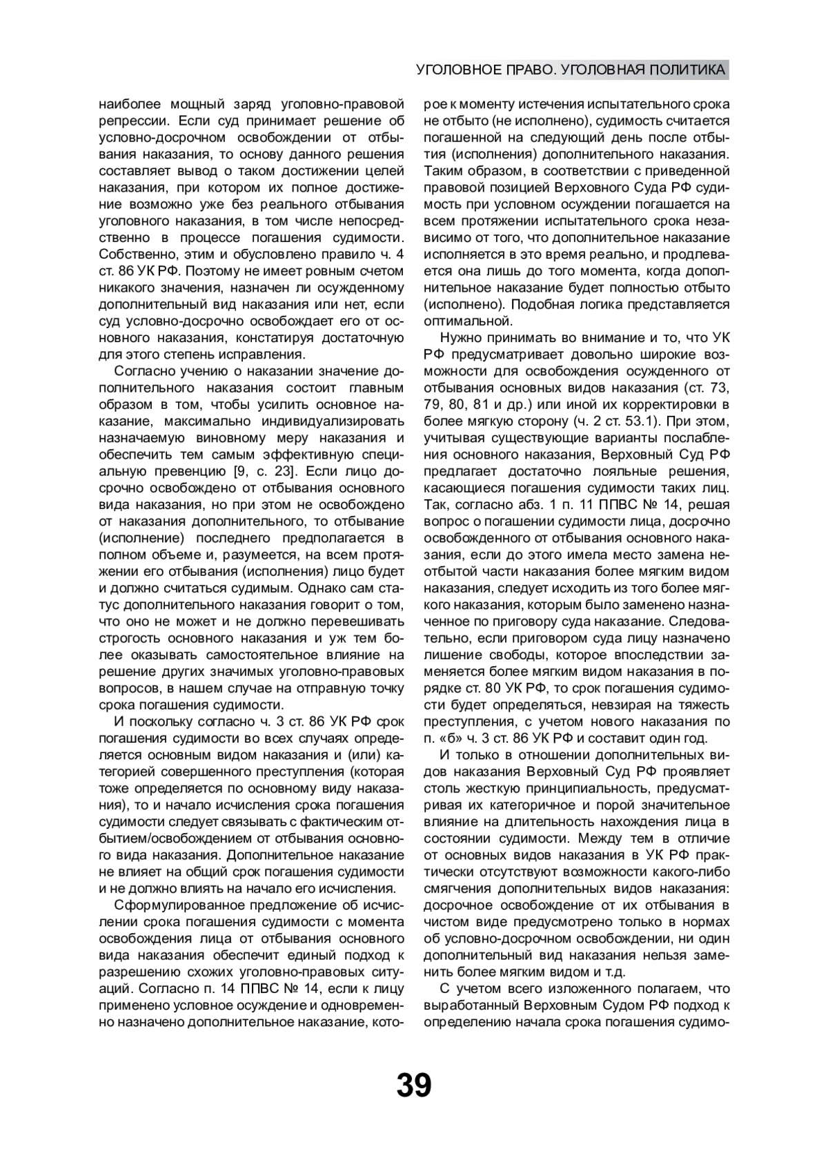 4. Скобелин С. Соотношение сроков дополнительных видов наказаний и сроков погашения судимости // Уголовное право. 2014. № 2.
