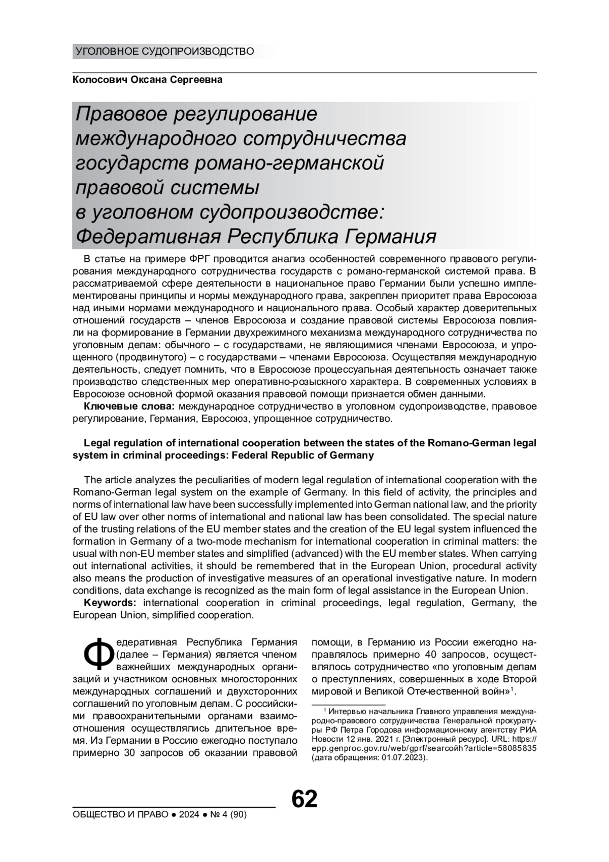 7. Mancano L. The Systemic and the Particular in European Law-Judicial Cooperation in Criminal Matters. German Law Journal. 2023;24(6):962-981. URL: 10.1017/glj.2023.61 (дата обращения: 11.12.2023). DOI: 10.1017/glj.2023.61( EDN: ZWQQPU