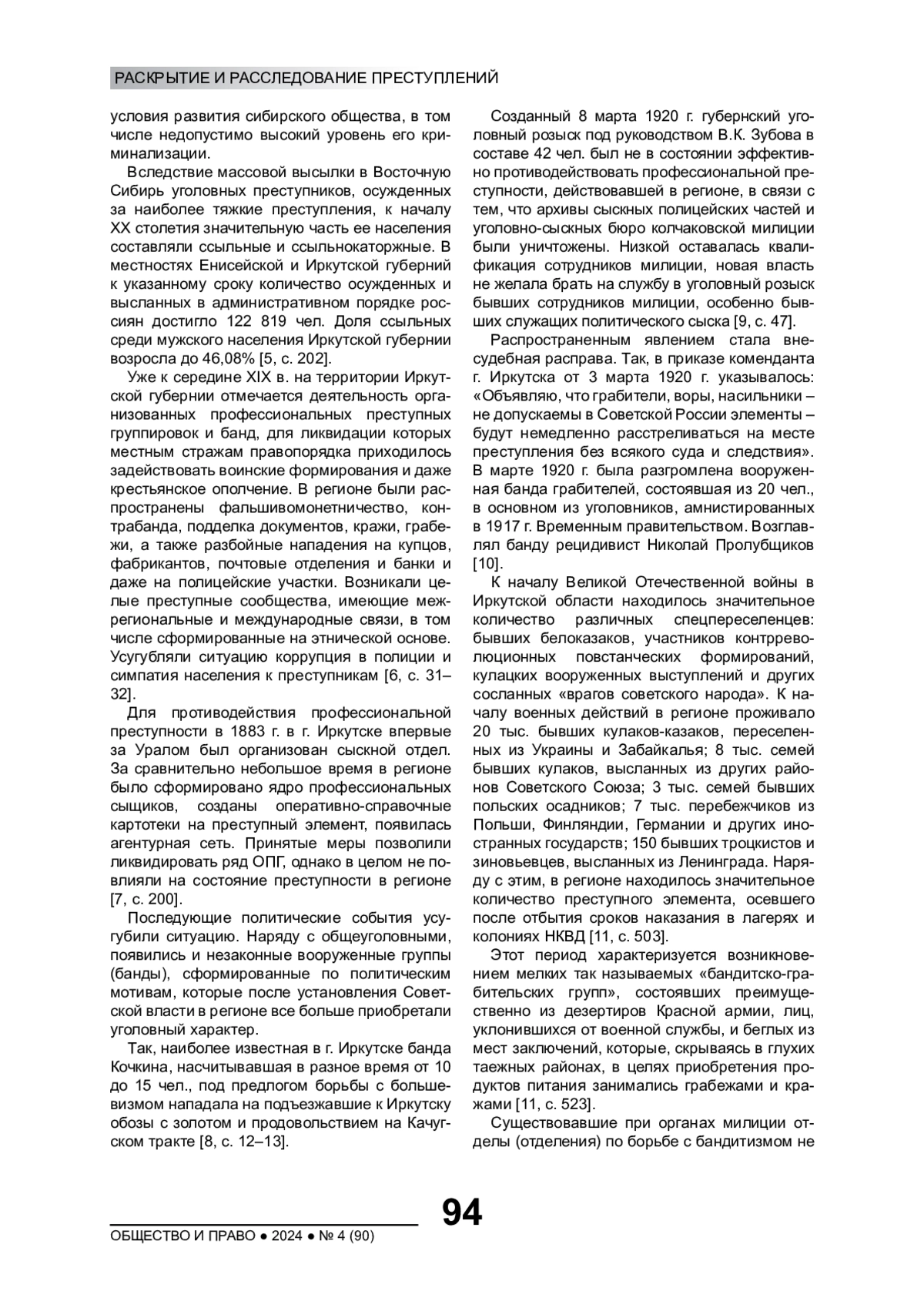 6. Сысоев А.А. Преступные объединения как вид соучастия в противоправной деятельности на территории Восточной Сибири в начале XX столетия // Вестник Восточно-Сибирского института МВД России. 2020. № 1(92). С. 29-38. EDN: JJQYUU