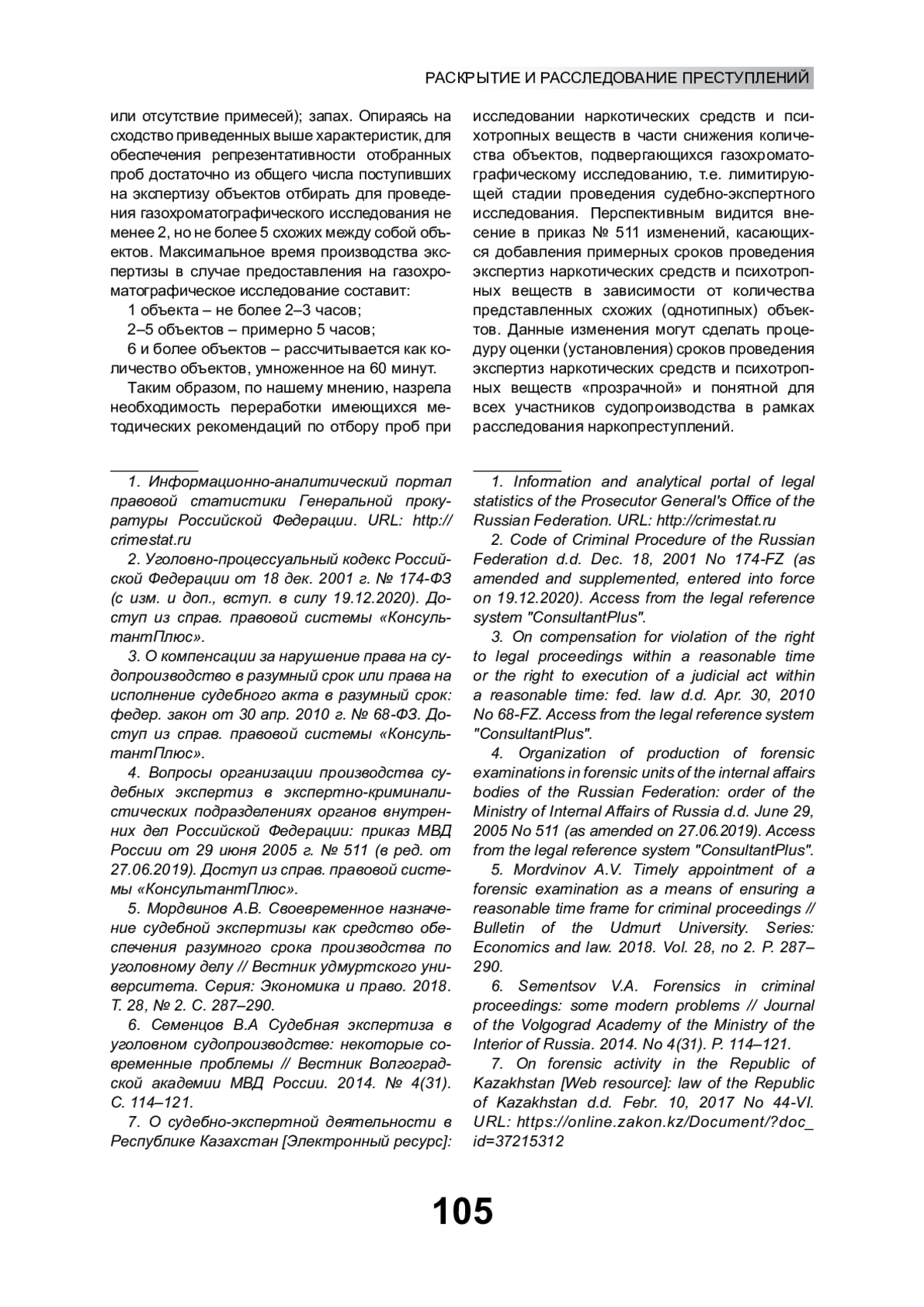 5. Мордвинов А.В. Своевременное назначение судебной экспертизы как средство обеспечения разумного срока производства по уголовному делу // Вестник удмуртского университета. Серия: Экономика и право. 2018. Т. 28, № 2. С. 287-290. EDN: XQCLFB
