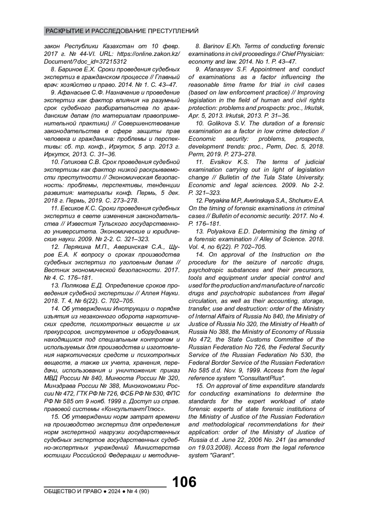 12. Перякина М.П., Аверинская С.А., Щуров Е.А. К вопросу о сроках производства судебных экспертиз по уголовным делам // Вестник экономической безопасности. 2017. № 4. С. 176-181. EDN: XSRBBR