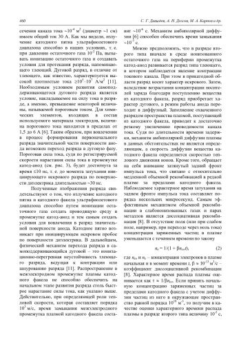 Давыдов С. Г., Долгов А. Н., Карпов М. А., Корнеев А. В., Никишин Д. В., Пшеничный А. А., Якубов Р. Х. Пространственная структура и динамика импульсного дугового разряда в вакууме 454