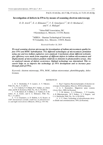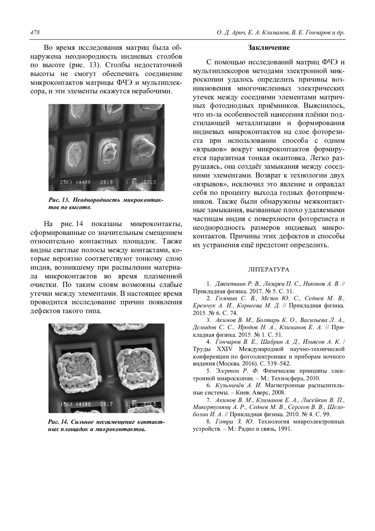 Статья: Исследование дефектов матричных фотоприемных устройств методами электронной микроскопии (2019)