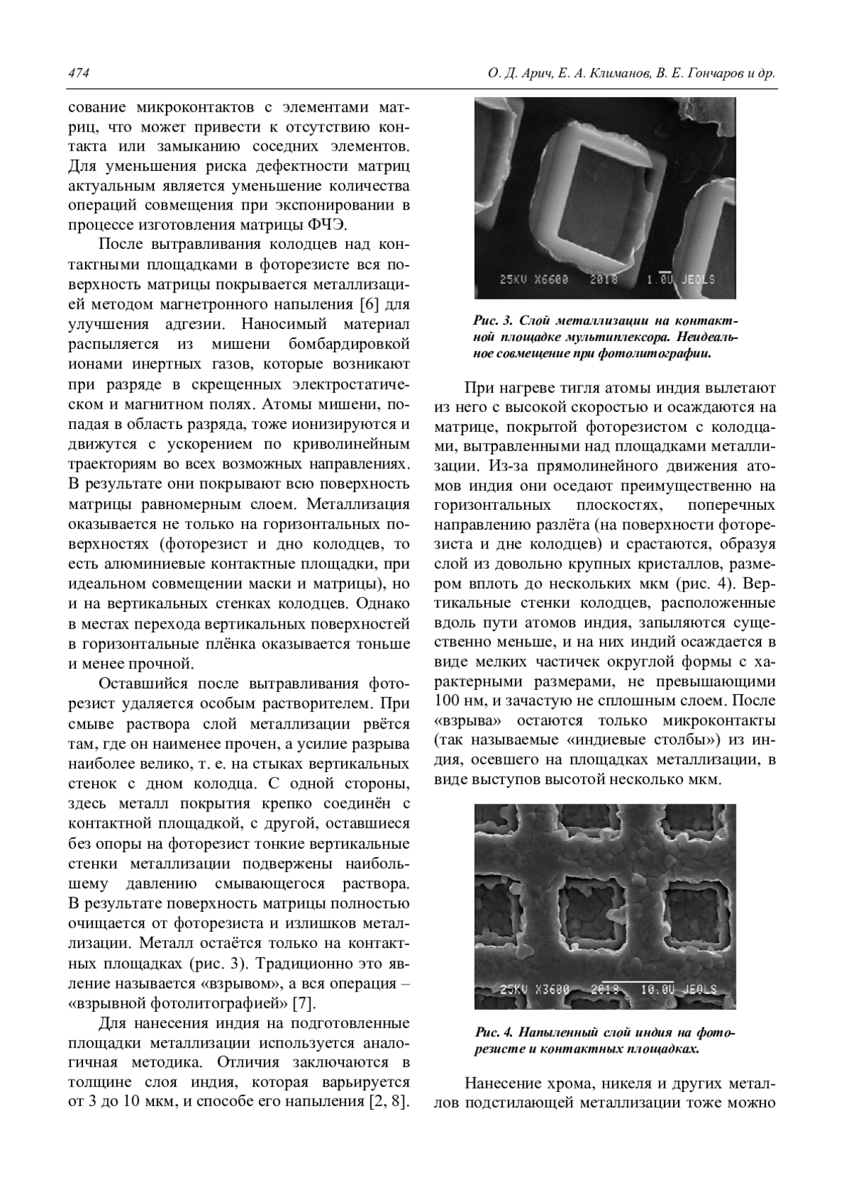 Ключевые фразы: электронная микроскопия, матрица фоточувствительных элементов, мультиплексор, индиевый микроконтакт, матричное фотоприемное устройство, фотолитография